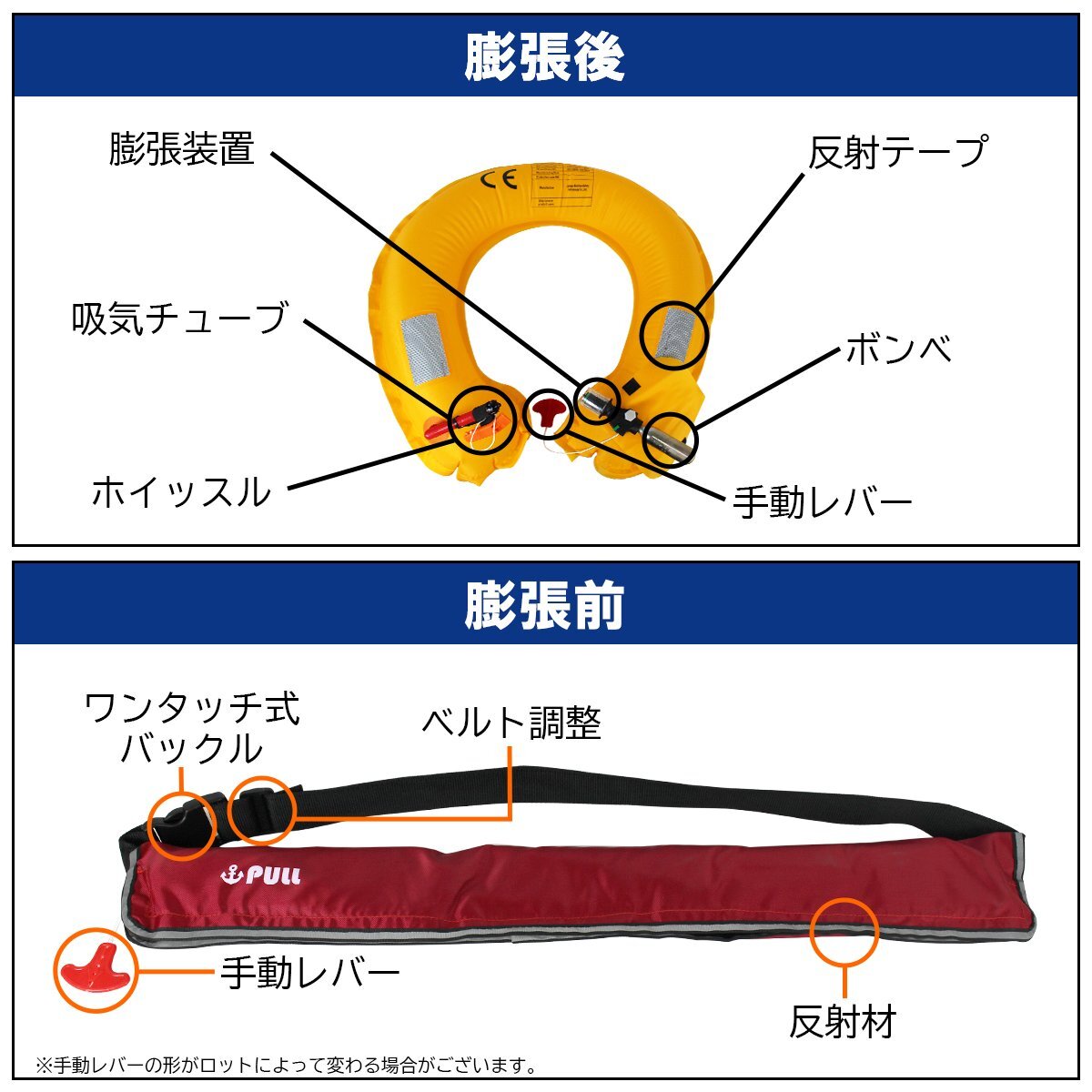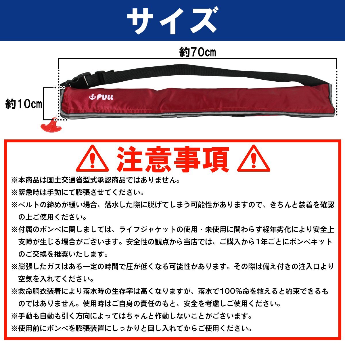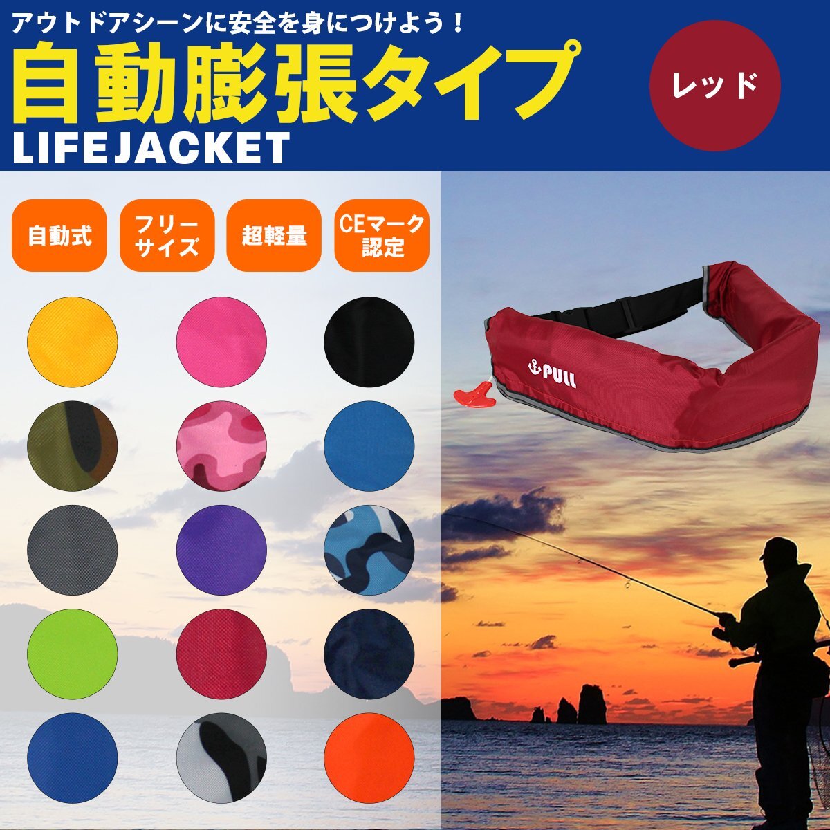 オリジナルカラー多数! ライフジャケット 自動膨張式 腰巻 腰 ベルトタイプ レッド/赤 ウェスト固定式 ※男女兼用! フリーサイズ