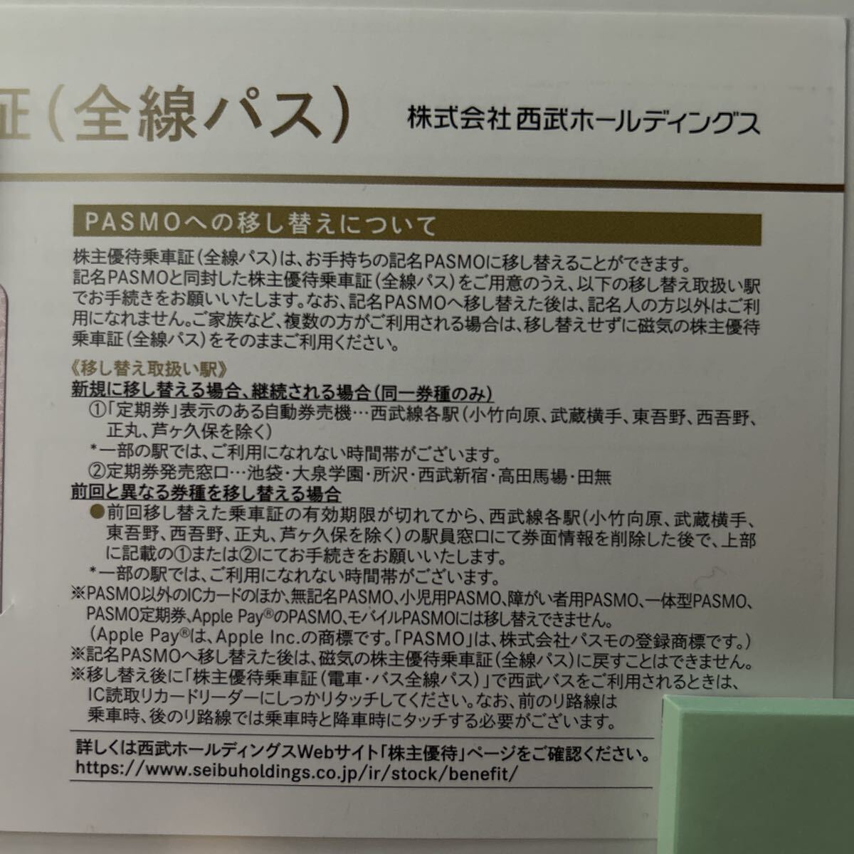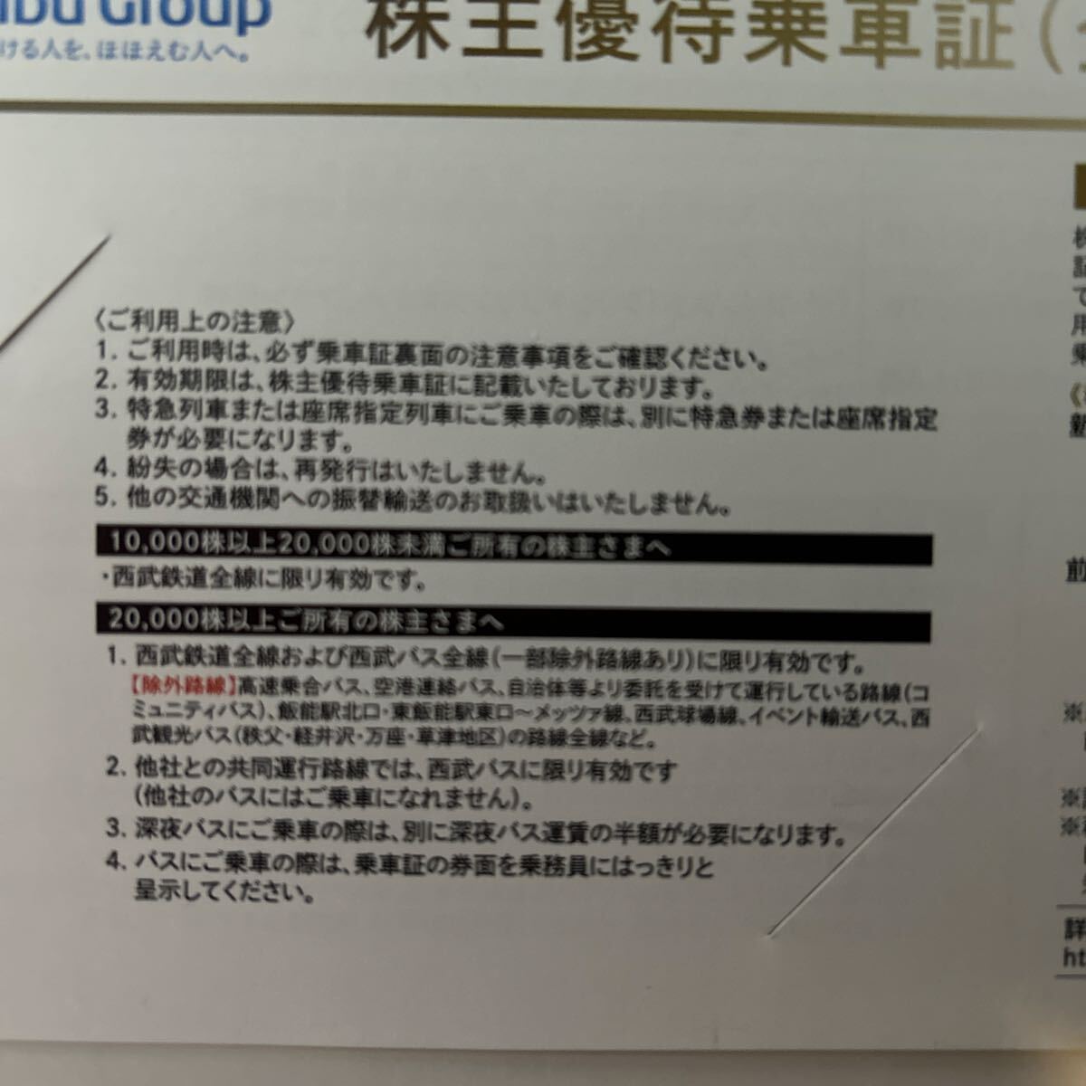 西武鉄道 株主優待乗車証 定期タイプ 電車バス全線