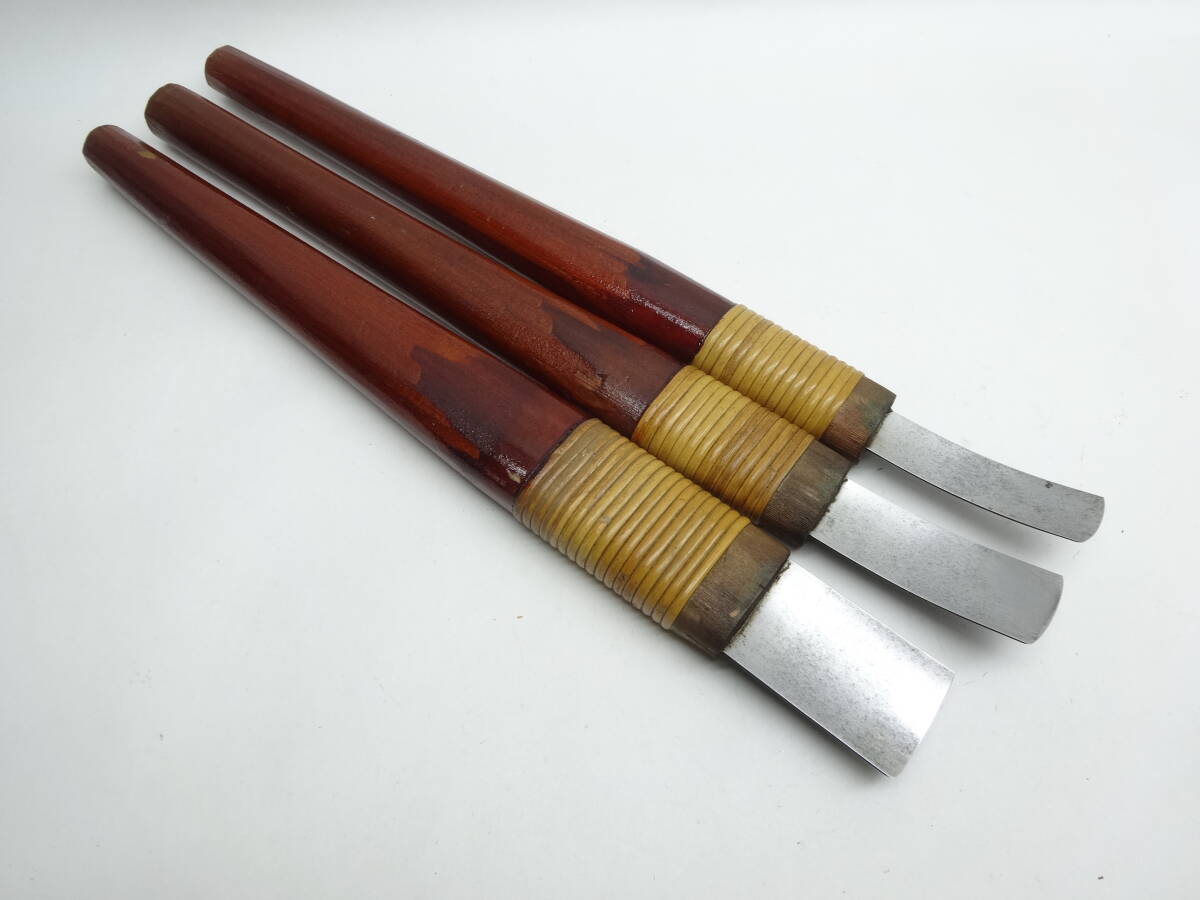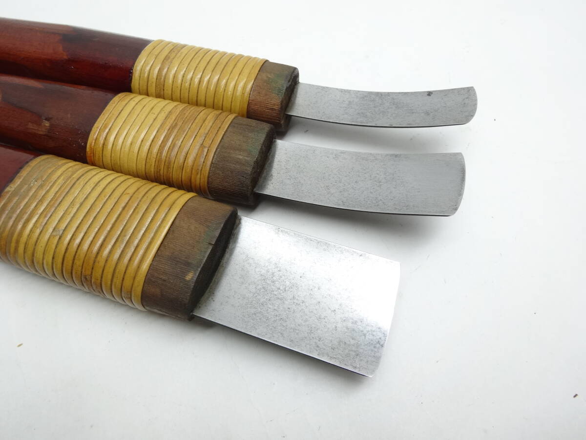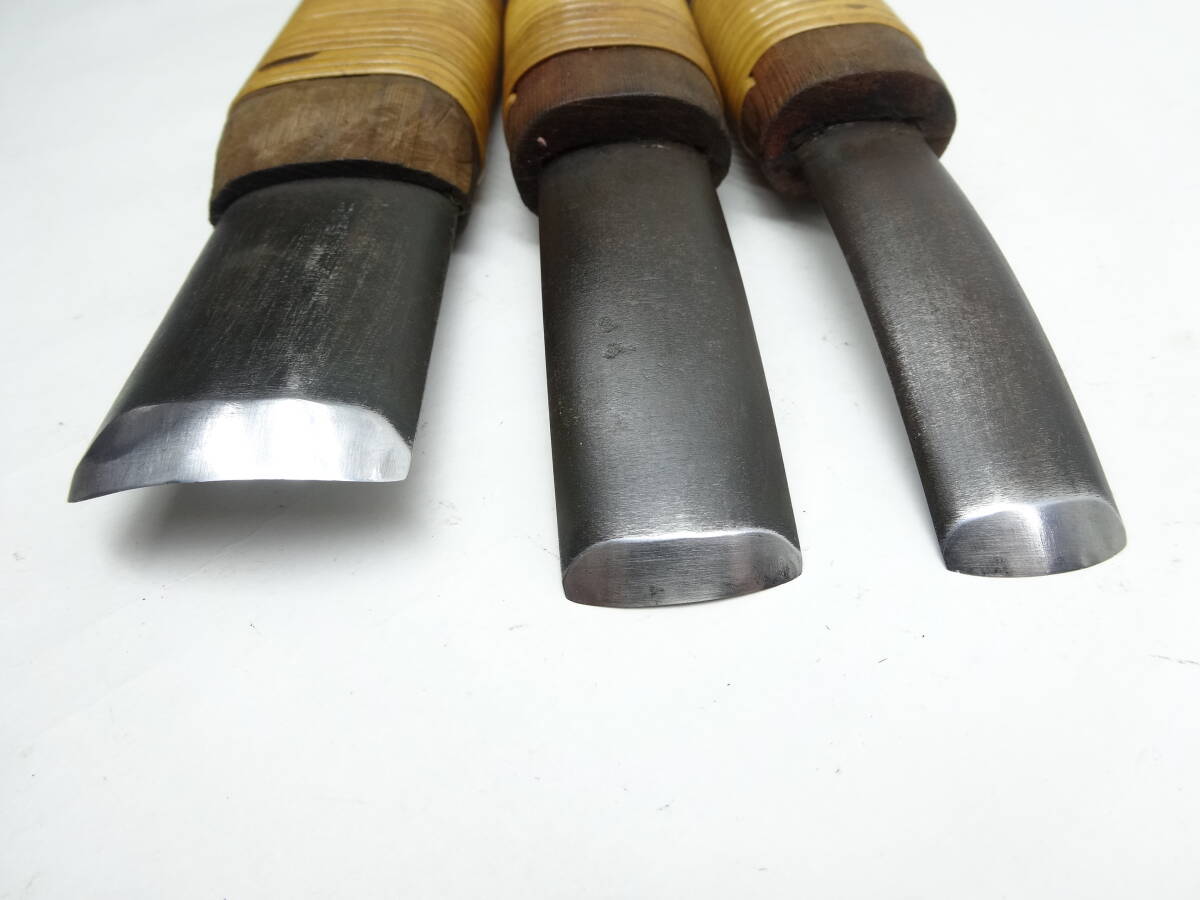 y5032 木彫師の彫刻刀3本組 38㎜ 25㎜ 19㎜ 浅丸 先曲浅丸 指物 細工 刃物 仏像 彫刻 本職道具 JAPAN