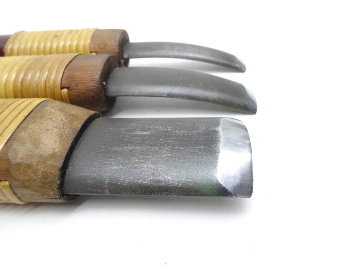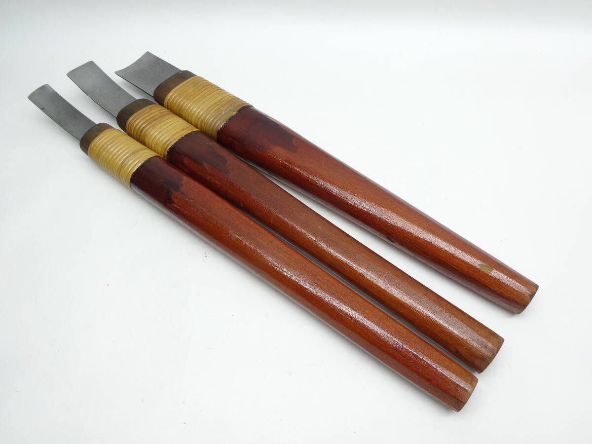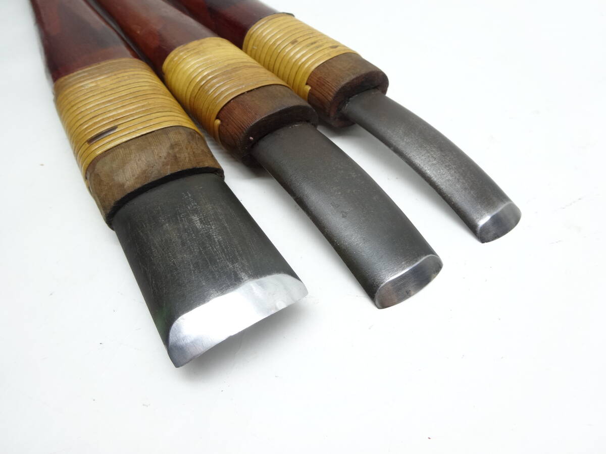 y5032 木彫師の彫刻刀3本組 38㎜ 25㎜ 19㎜ 浅丸 先曲浅丸 指物 細工 刃物 仏像 彫刻 本職道具 JAPAN