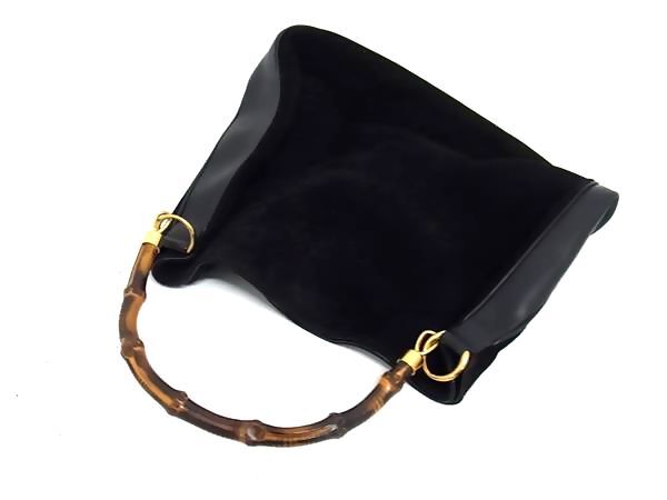 1円 GUCCI グッチ 001 3754 1577 バンブー スエード×レザー 2WAY ショルダー ハンドバッグ レディース ブラック系 BN6282