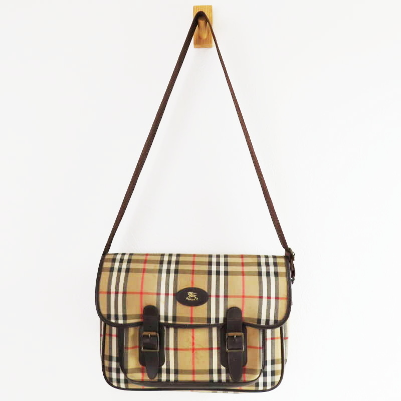 T02-k080 Burberrys バーバリーズ ノバチェック キャンバス/レザ― メッセンジャー ショルダーバッグ ベージュ/ブラウン