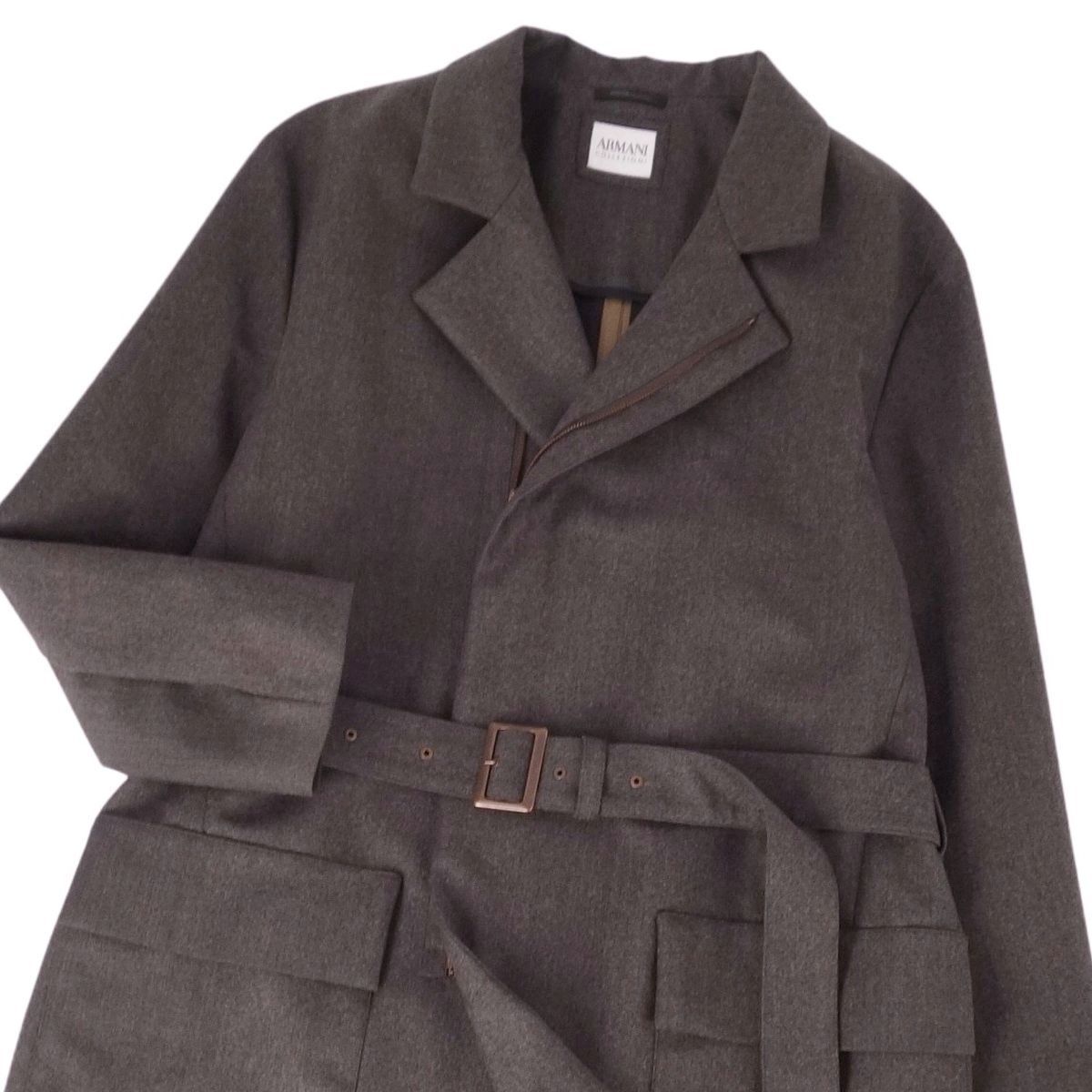 極美品 アルマーニ コレッツォーニ ARMANI COLLEZIONI ロングコート ベルト付 ボンディング ウール メンズ 56 グレー ce02oo-rm10e29209