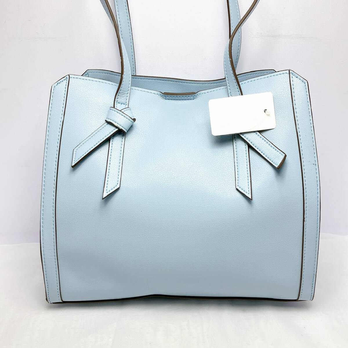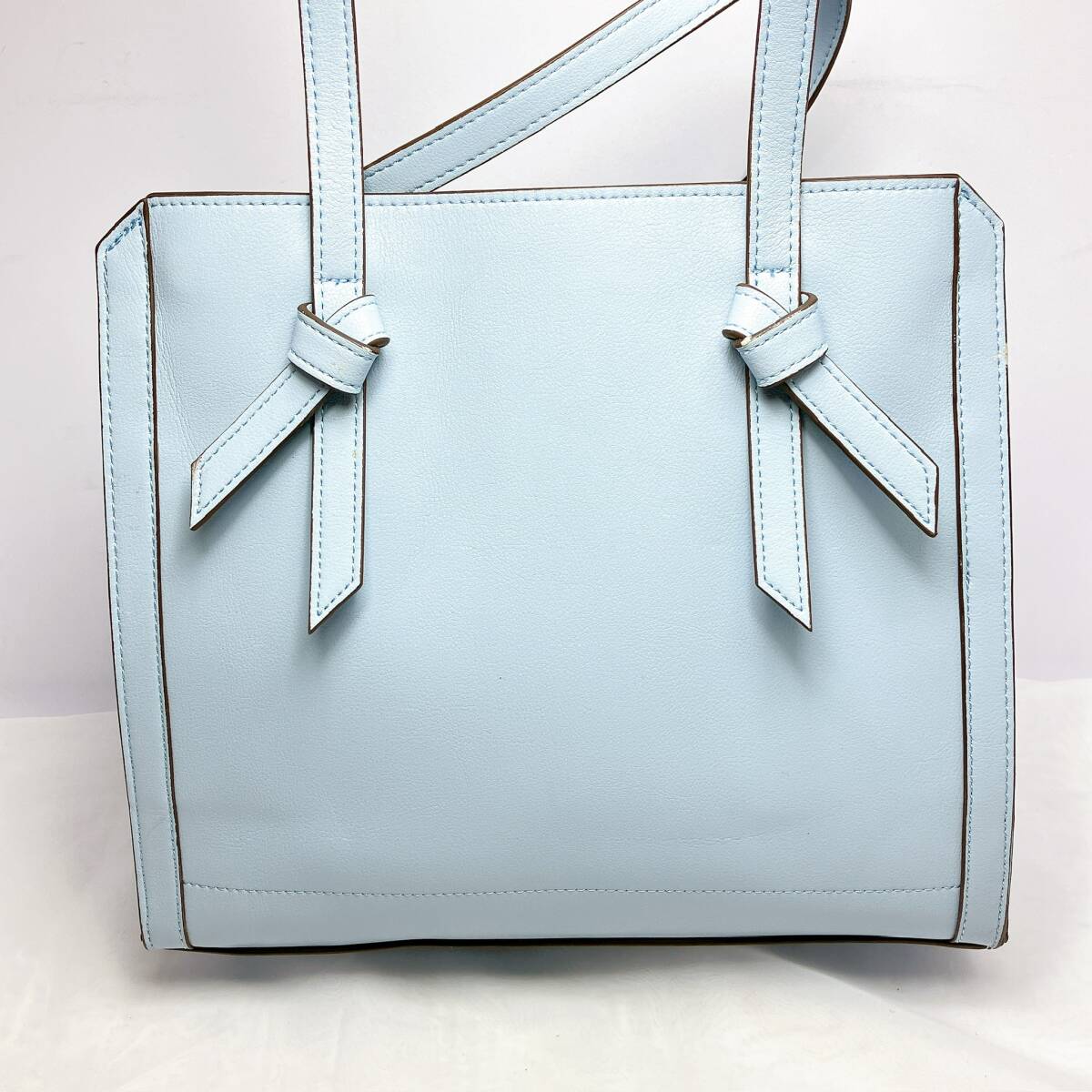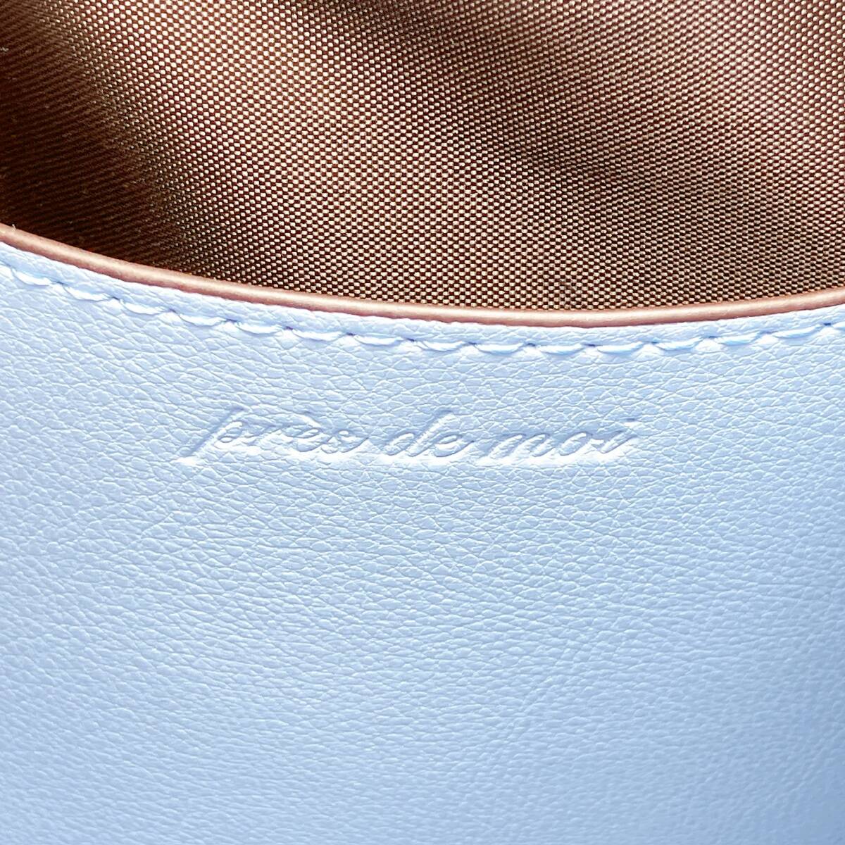 BG318○ pres de moi プレドゥモワ ハンドバッグ トートバッグ レザーバッグ ライトブルー 水色 リボン ブラウン 茶色 レディース ボタン