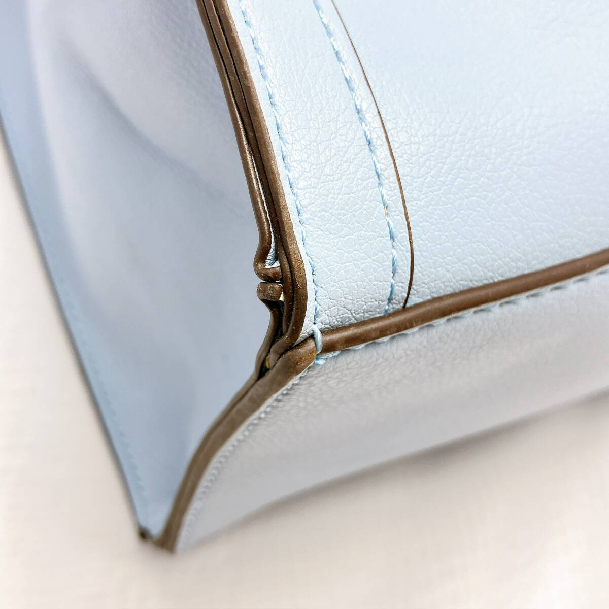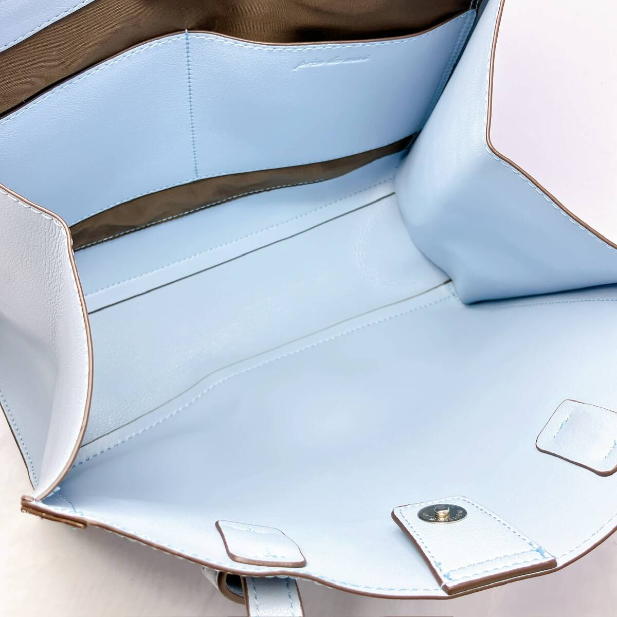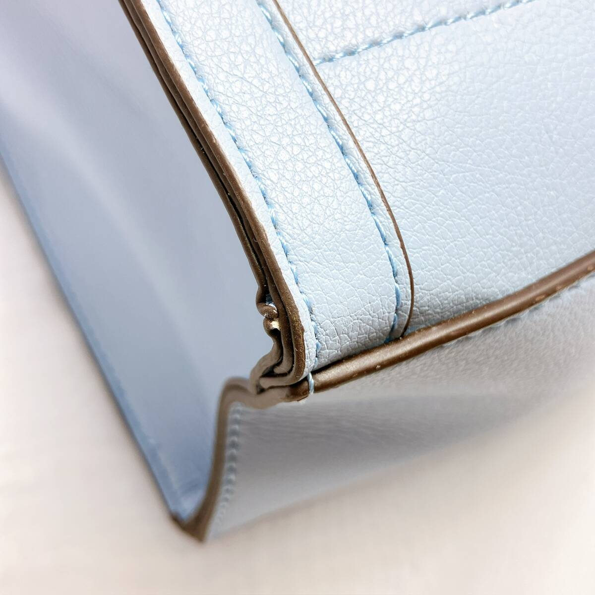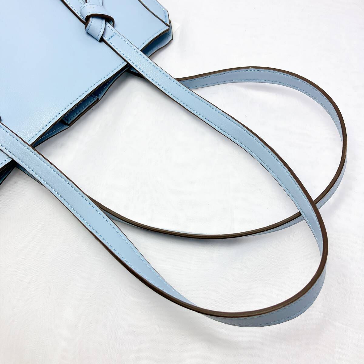BG318○ pres de moi プレドゥモワ ハンドバッグ トートバッグ レザーバッグ ライトブルー 水色 リボン ブラウン 茶色 レディース ボタン
