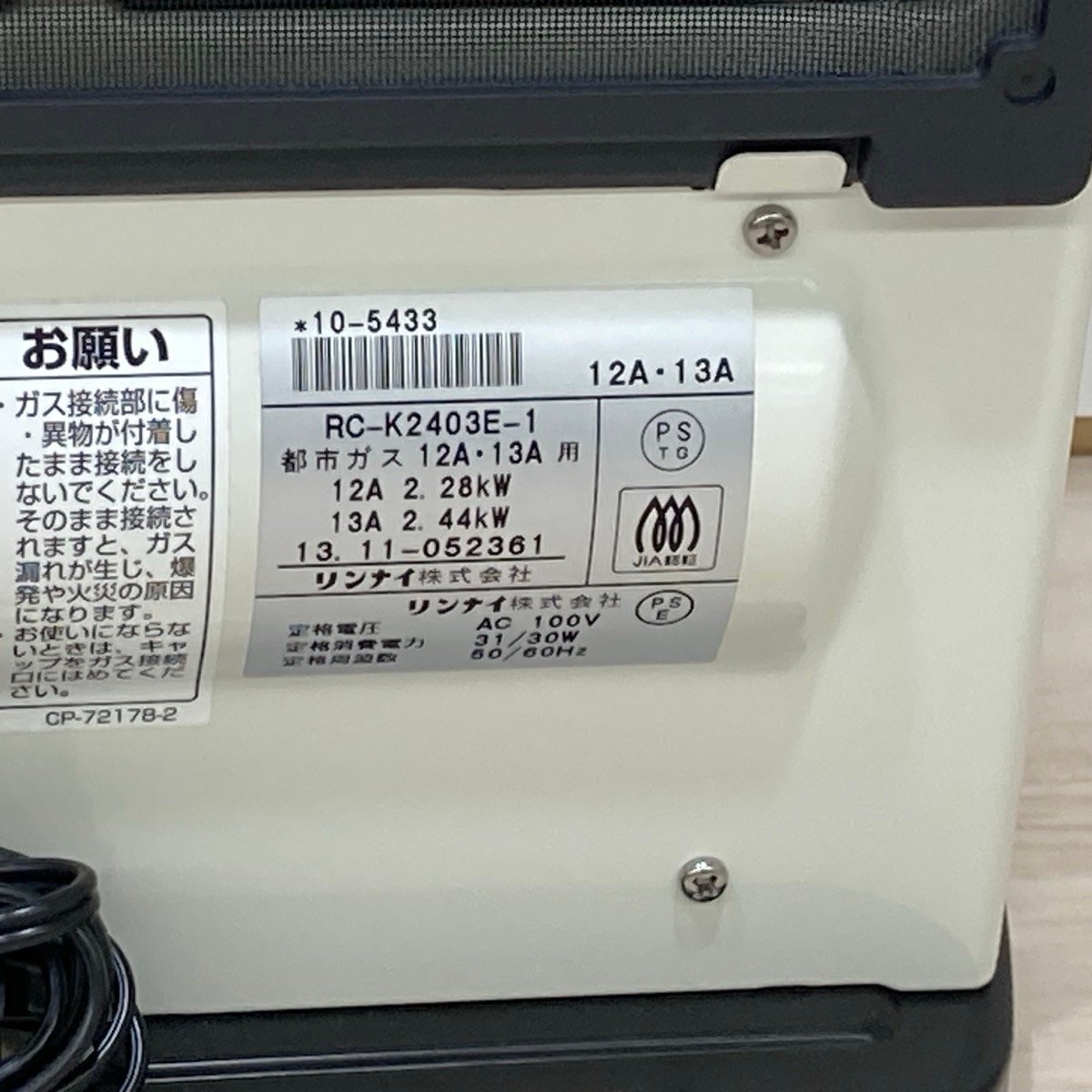リンナイ 都市ガス用(12A・13A) ガスファンヒーター RC-K2403E-1[E0702]