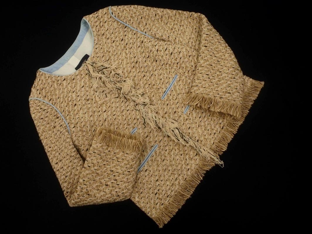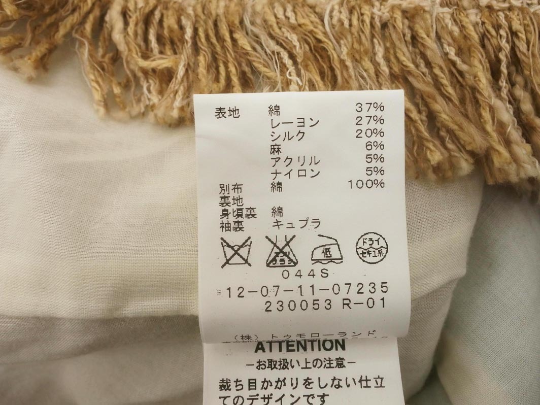 MACPHEE マカフィー トゥモローランド シルク混 フリンジ ノーカラー ジャケット size38/ベージュ ◇■ ☆ fkb1 レディース