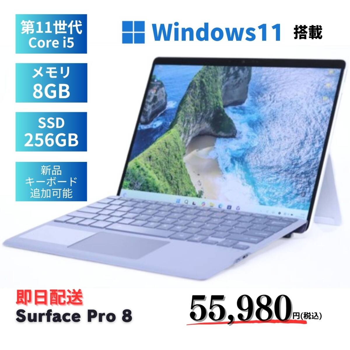 即配 軽量約891g 11世代Corei5 2in1 Surface Pro 8 i5-1145G7 RAM8G SSD256G 13.0インチ タッチパネル WiFi6 Windows11 リカバリ 特価 SALE