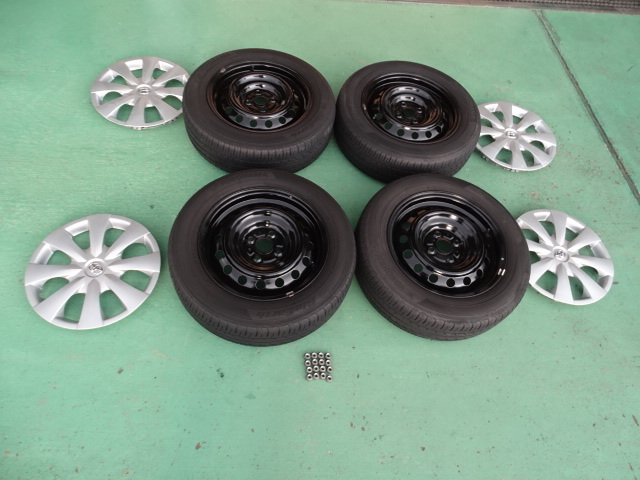 185/65R15 ブルーアース ラジアルタイヤ トヨタカローラワゴンで使用 ホイールキャップナット付き4本セット カローラ アクシオ アクア