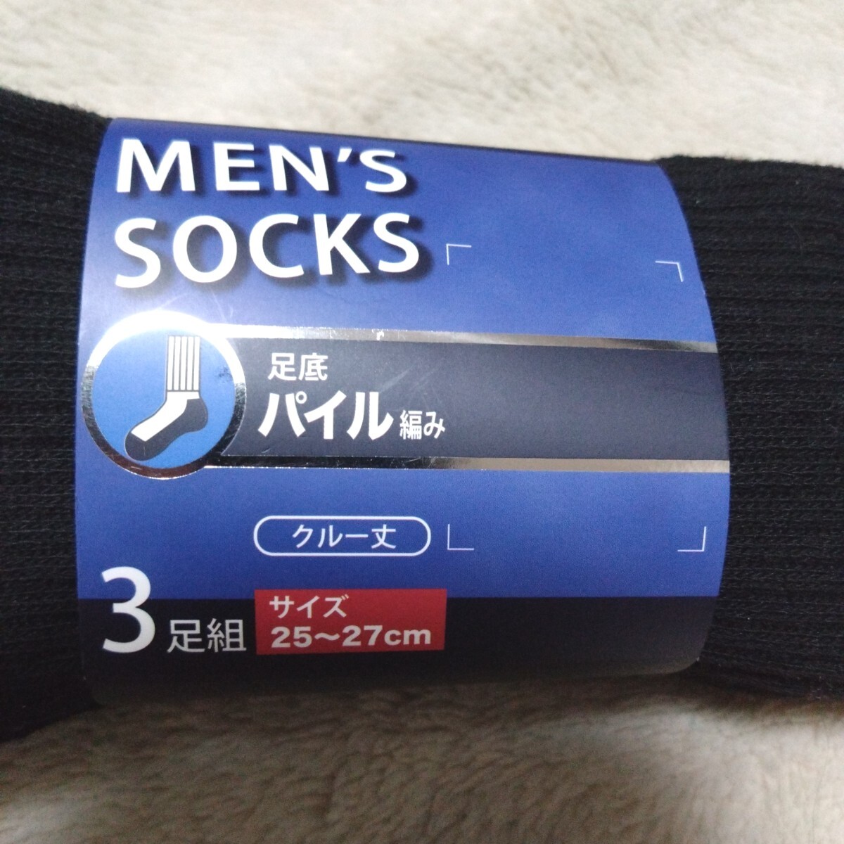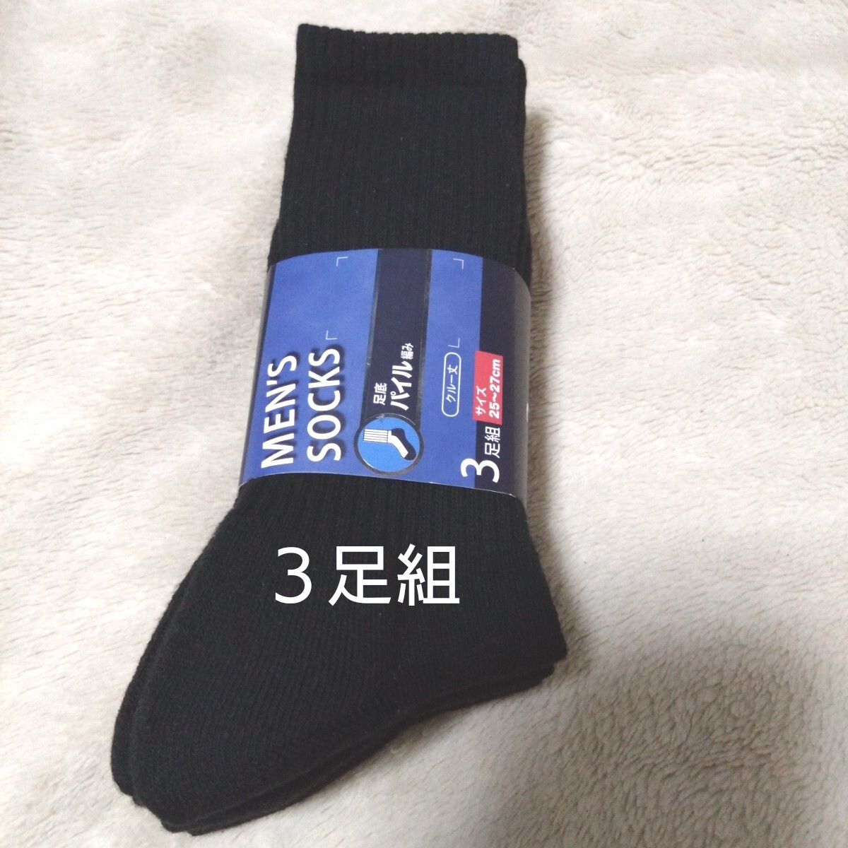 ①メンズ ソックス 紳士 靴下 3足組 サイズ25~27cm クルー丈 足底パイル編み