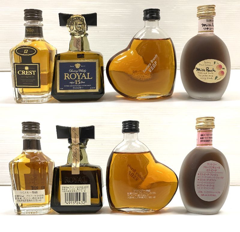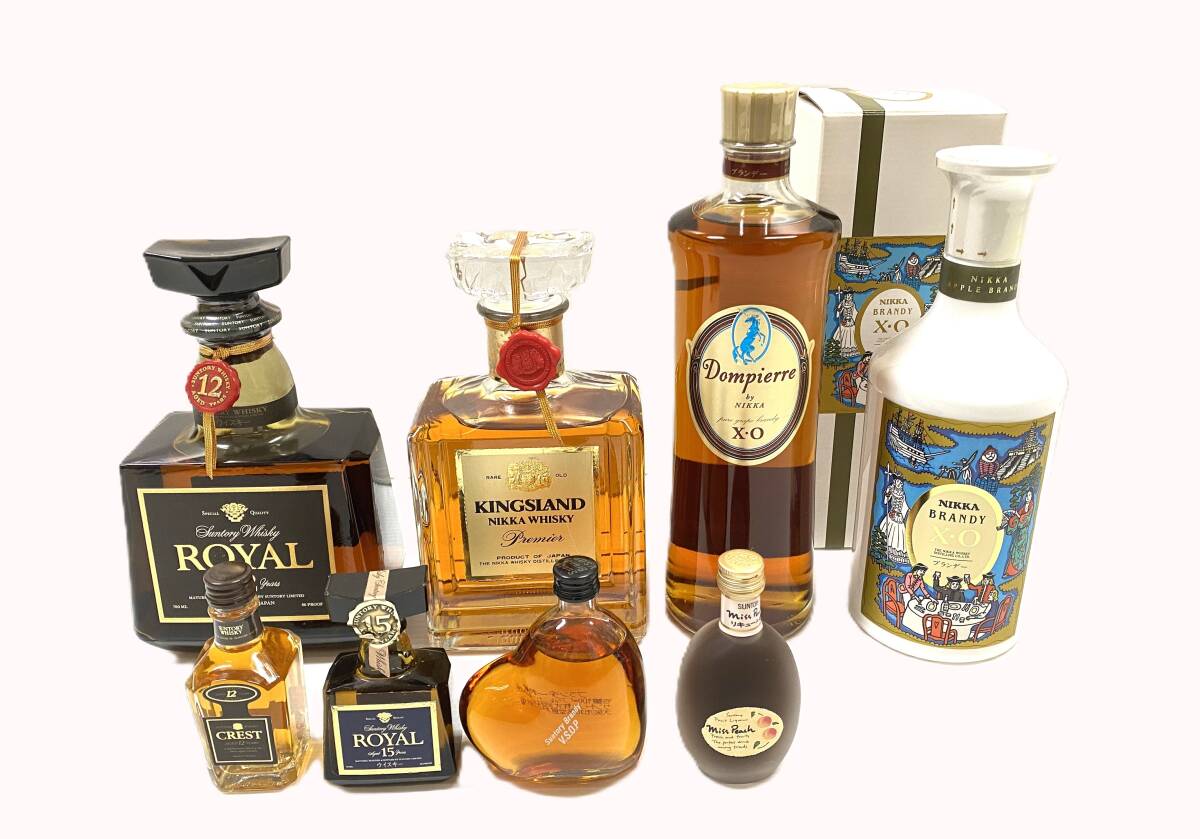 TM/未開栓 サントリー・ニッカ ミニボトル含む国産ウイスキー・ブランデー他8本まとめ/ローヤル12年、15年・キングスランド他/1119-2