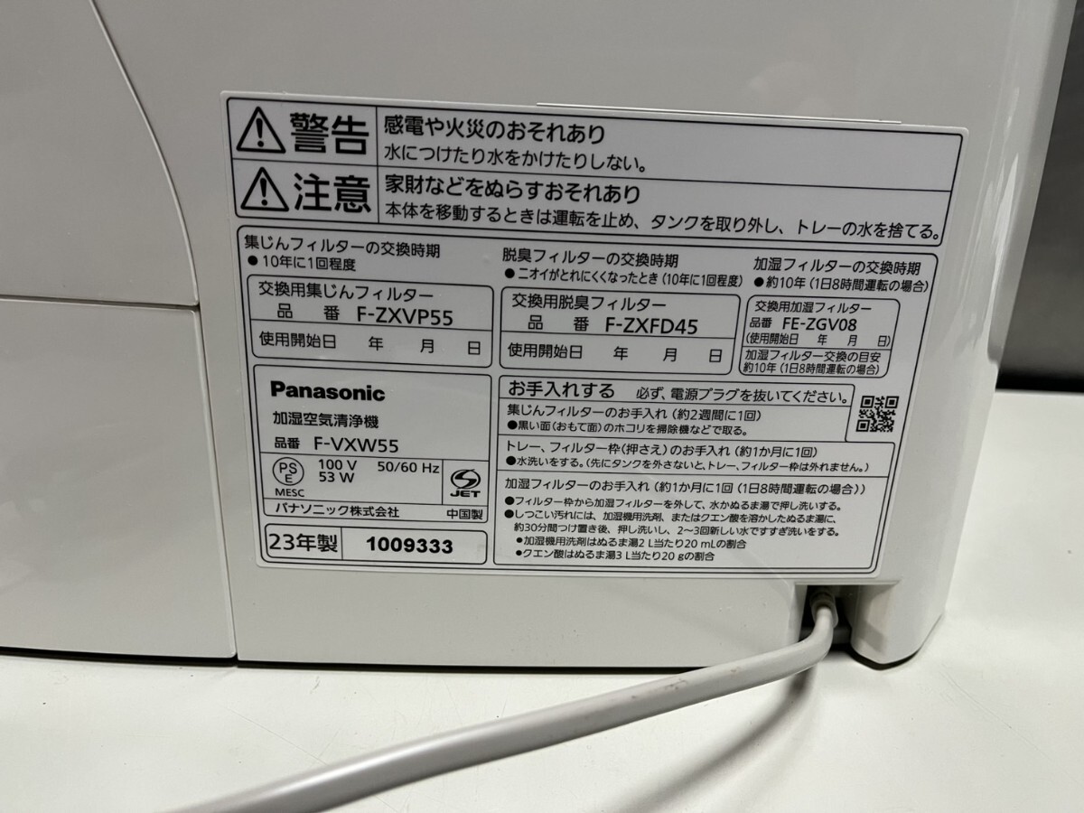 ○ Panasonic 家庭用 加湿 空気清浄機 F-VXW55 〜25畳モデル フィルター綺麗! 2023年製 ナノイーX 稼働確認済 中古品 ③