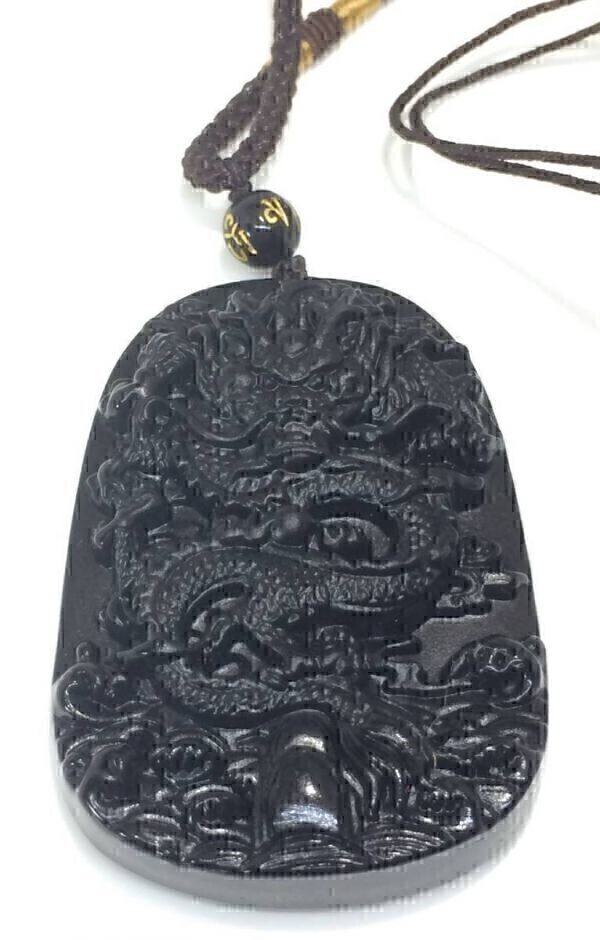 【Premio Fortuna】黒曜石のドラゴンお守り 守護石 パワーストーン ■開運ペンダント精巧な龍の彫り物 014