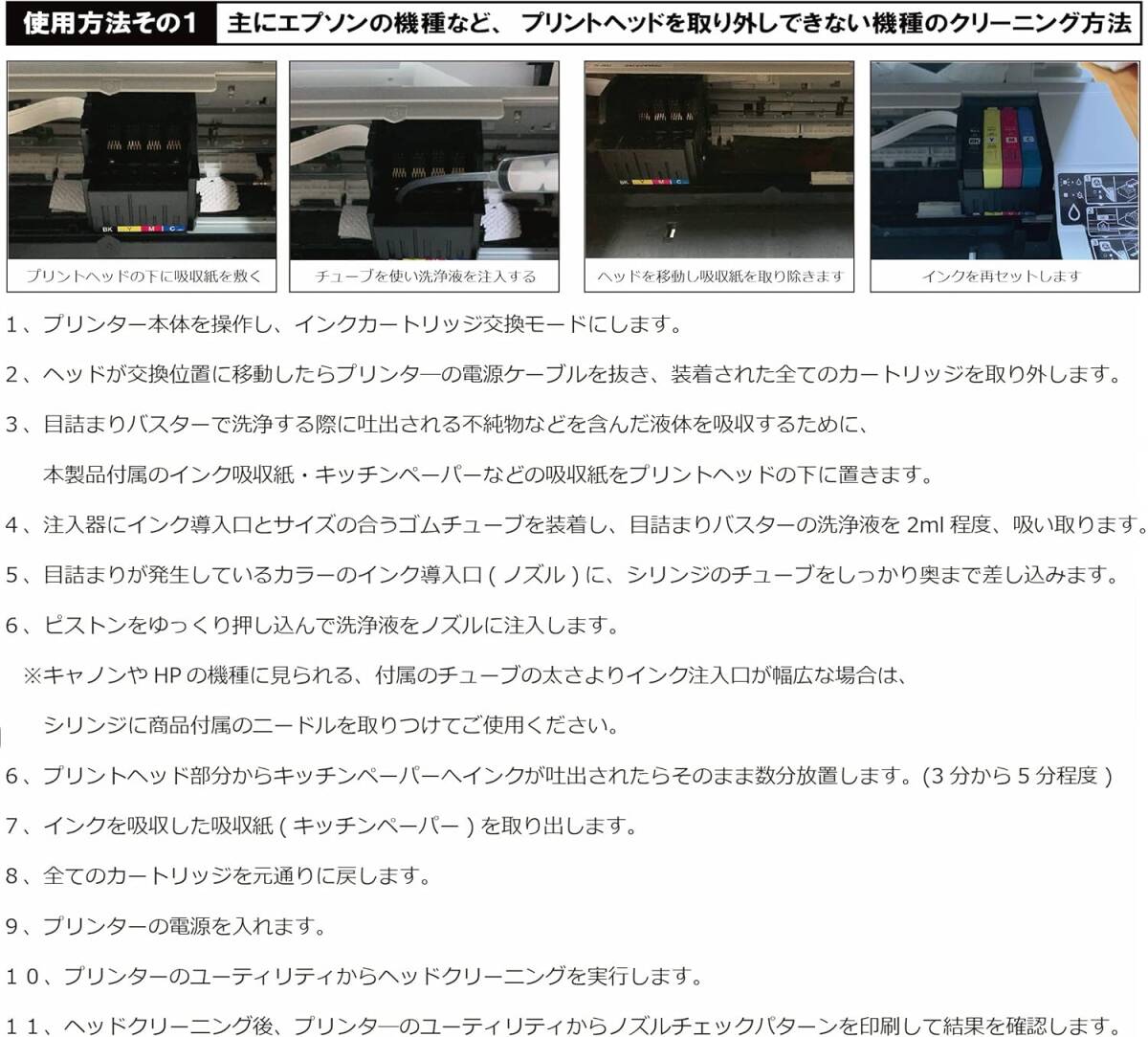 目詰まりバスター インクジェットプリンタ― 印字不良 洗浄液 100ml プリントヘッド クリーニング キャノン エプソン ブラザー HP 各社対応