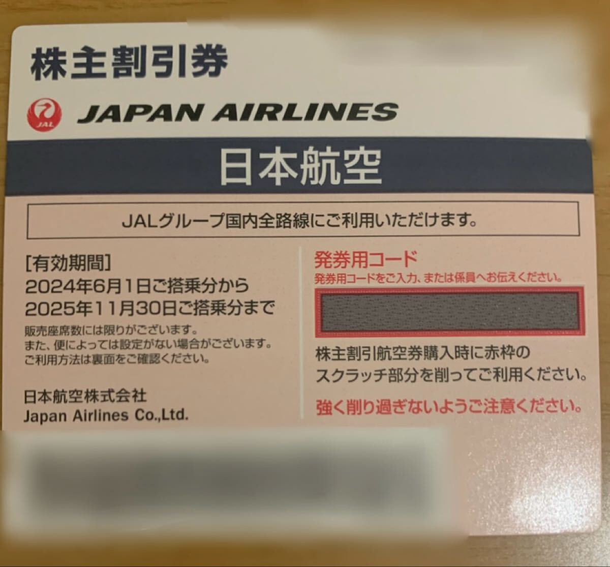 定額出品 即決 4枚 JAL 日本航空 株主優待 番号通知 コード通知 在庫あり 11月末まで