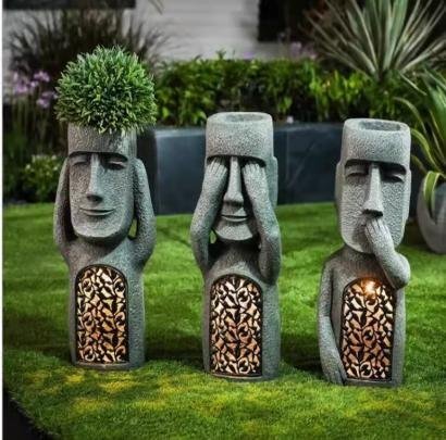 ソーラー ガーデンライト モアイ像 見ない ガーデンライト 植木鉢 ユニーク n912