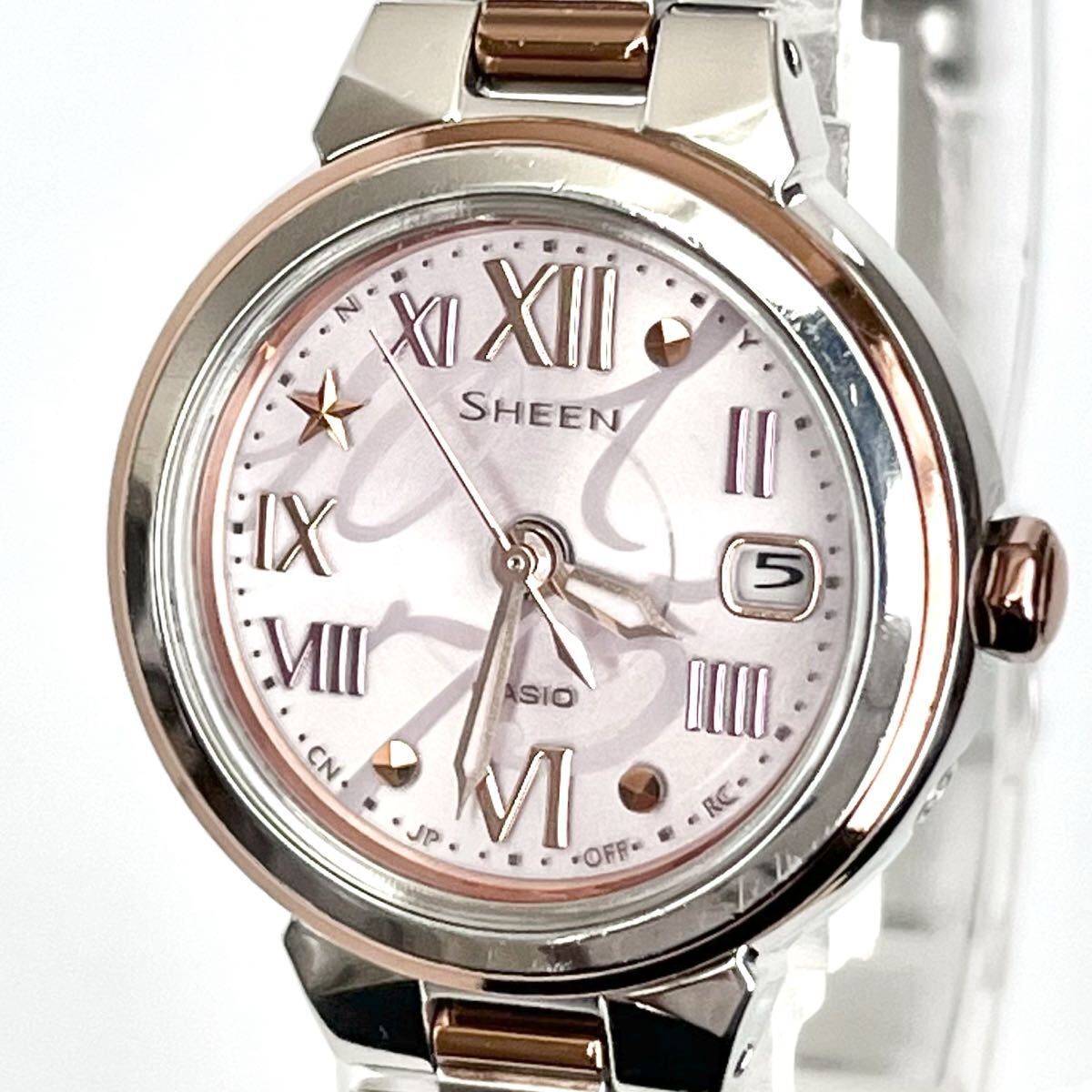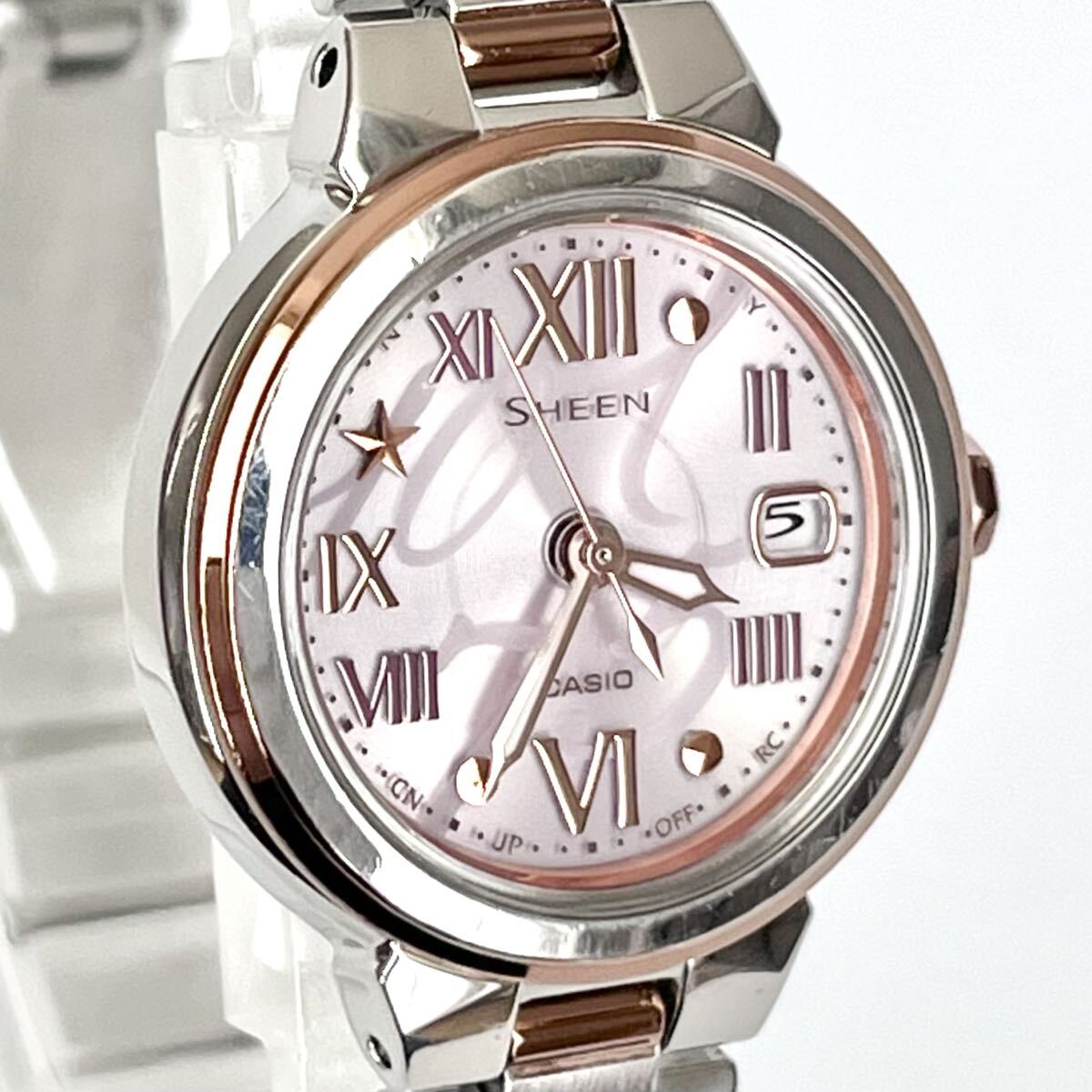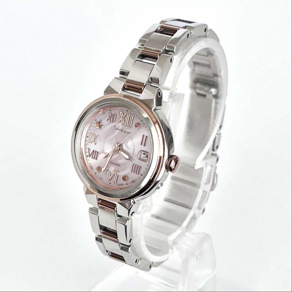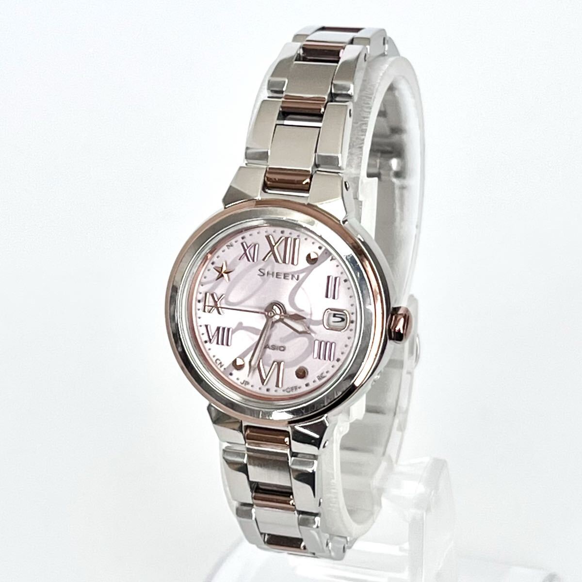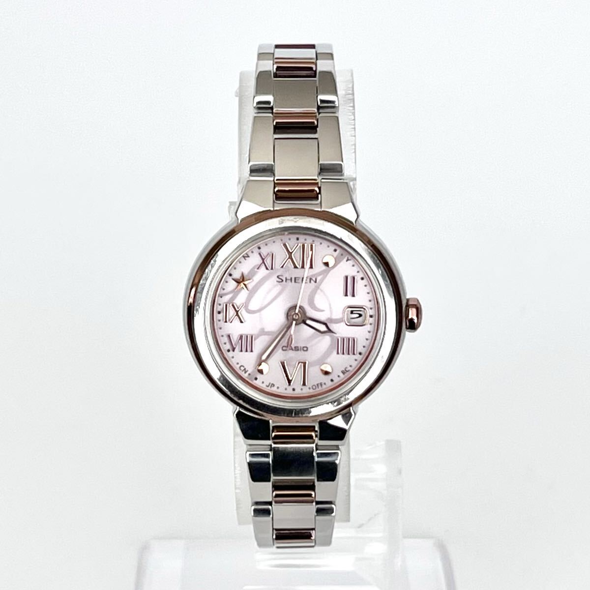 【稼働】磨き済み カシオ CASIO シーン SHEEN レディース 腕時計 電波ソーラー 美品 ピンク文字盤 s2138