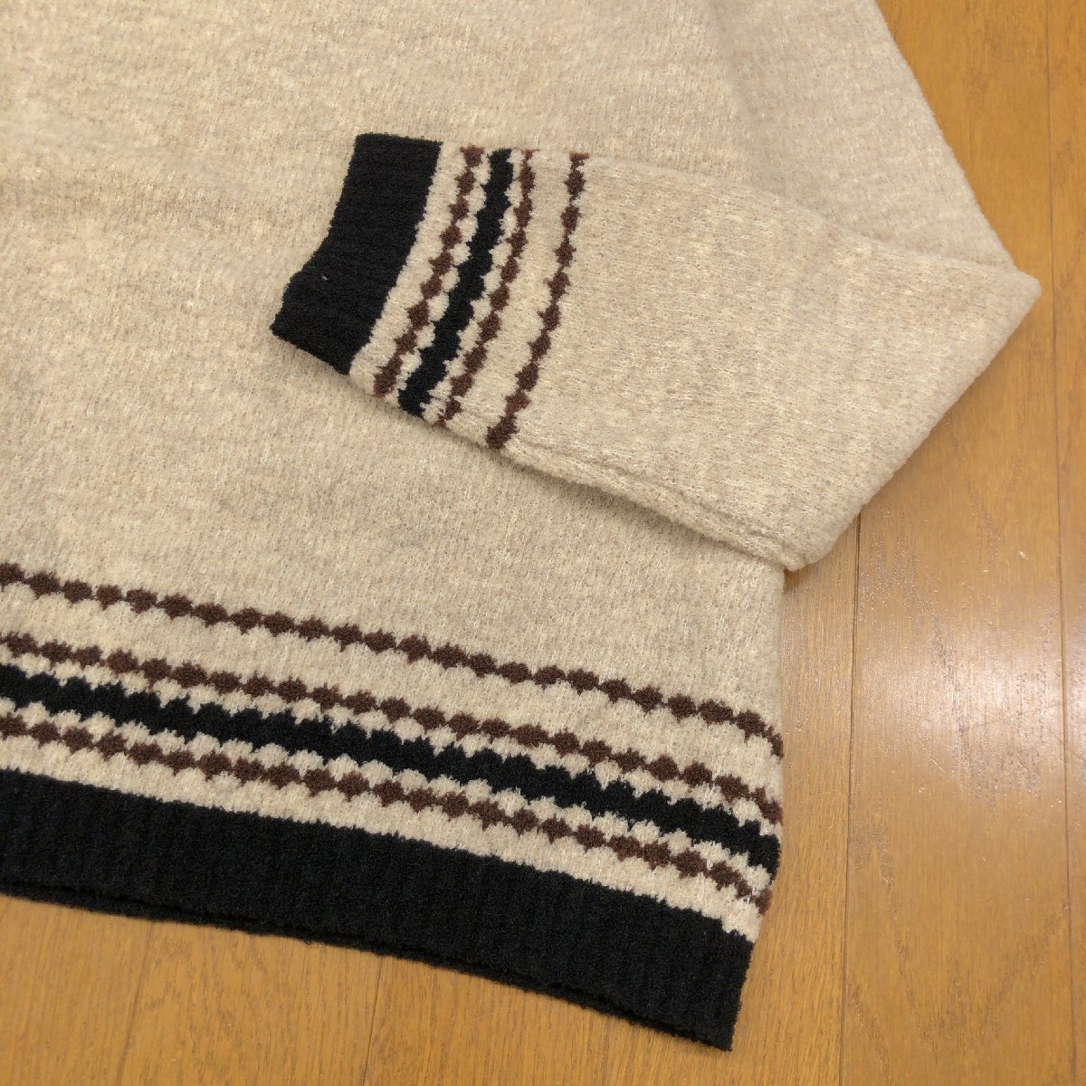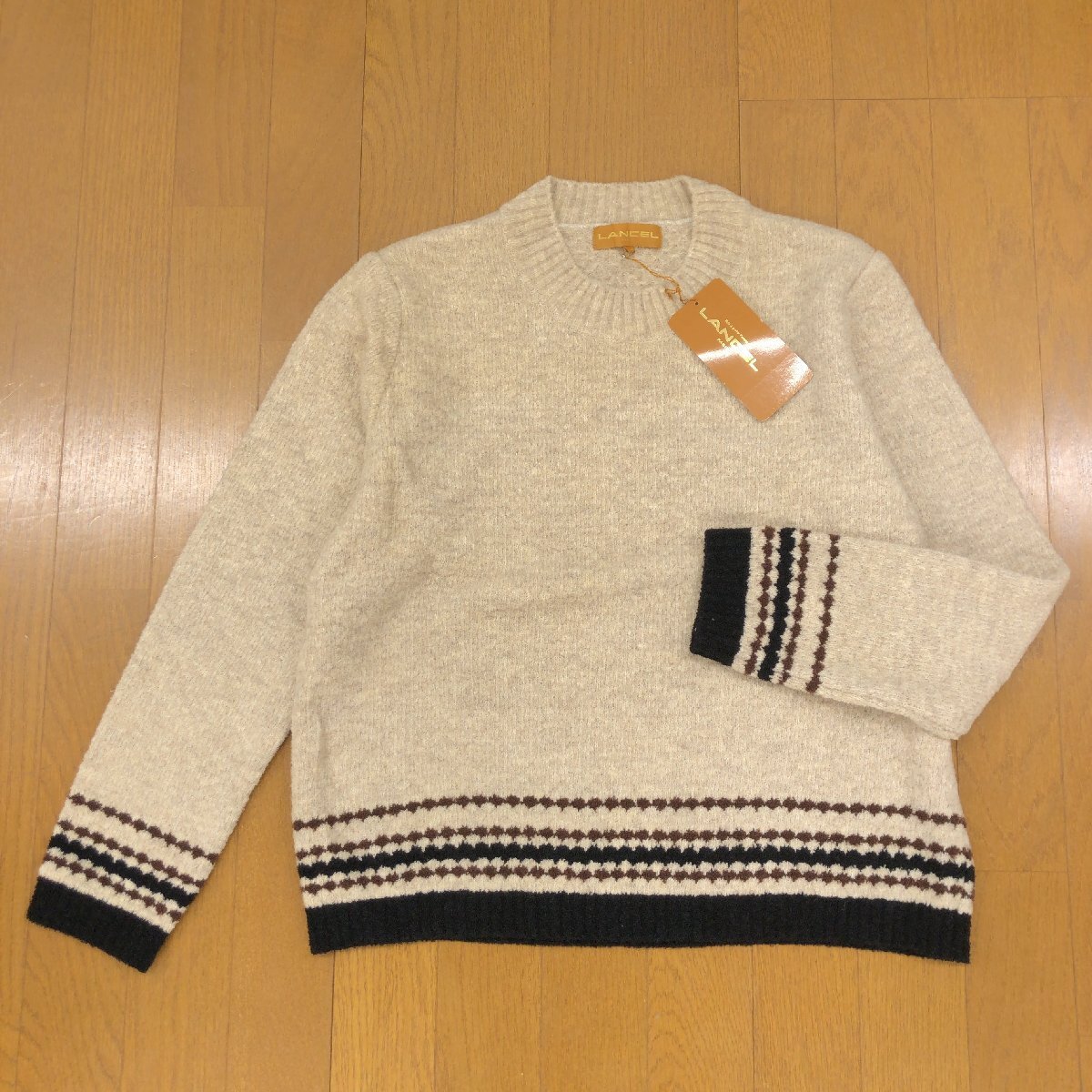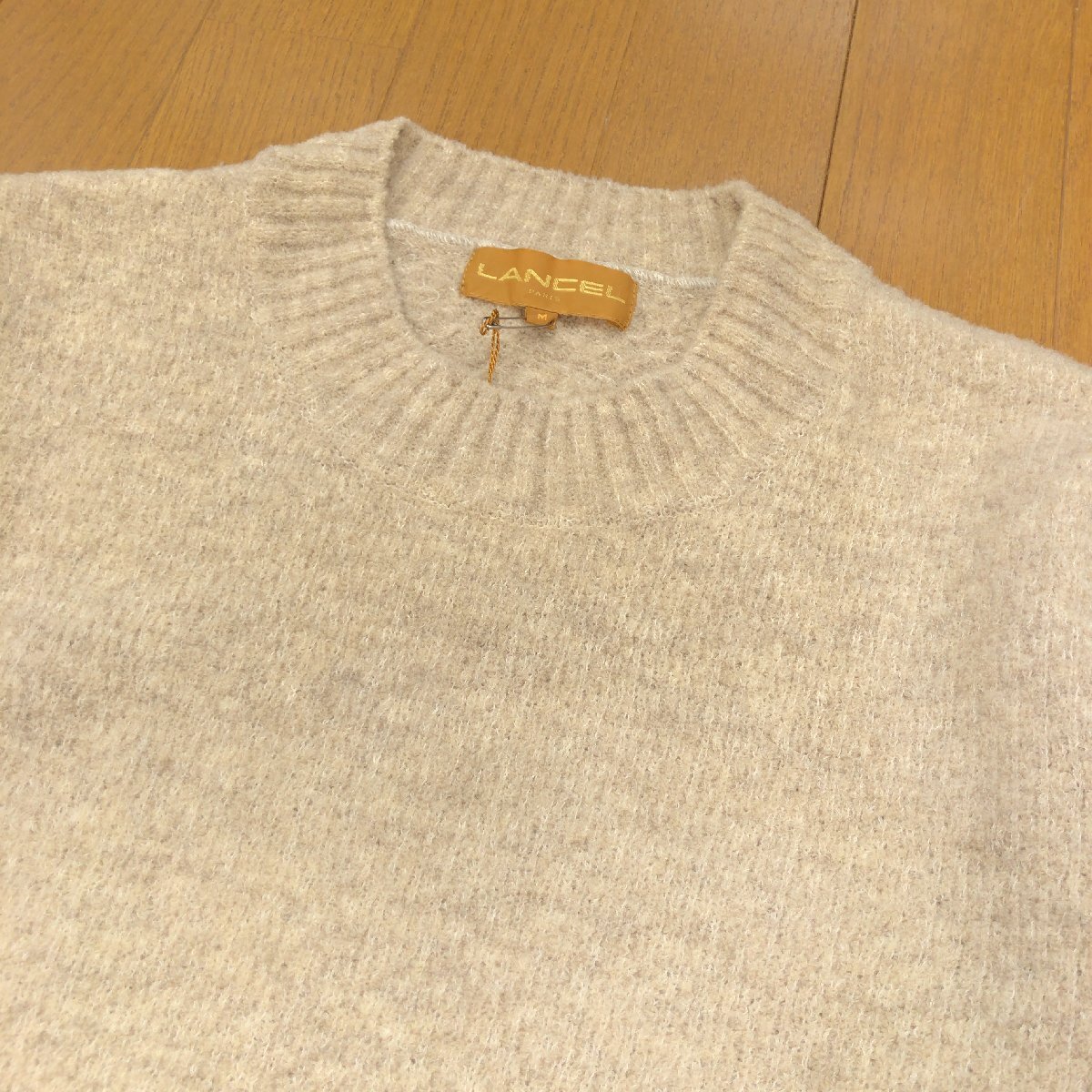 新品 LANCEL ランセル ウール ナイロン クルーネック ニット セーター M ベージュ 日本製 長袖 カットソー レディース 婦人 未使用