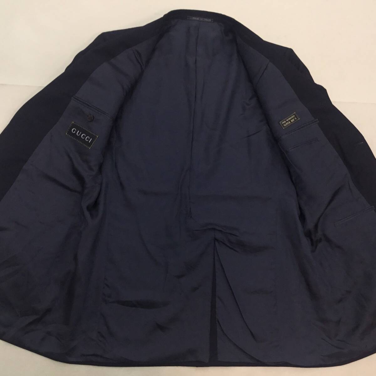 ■イタリア製 GUCCI グッチ テーラードジャケット ブレザー ネイビー メンズ スーパー100'S ウール100% シングルボタン 0.74kg