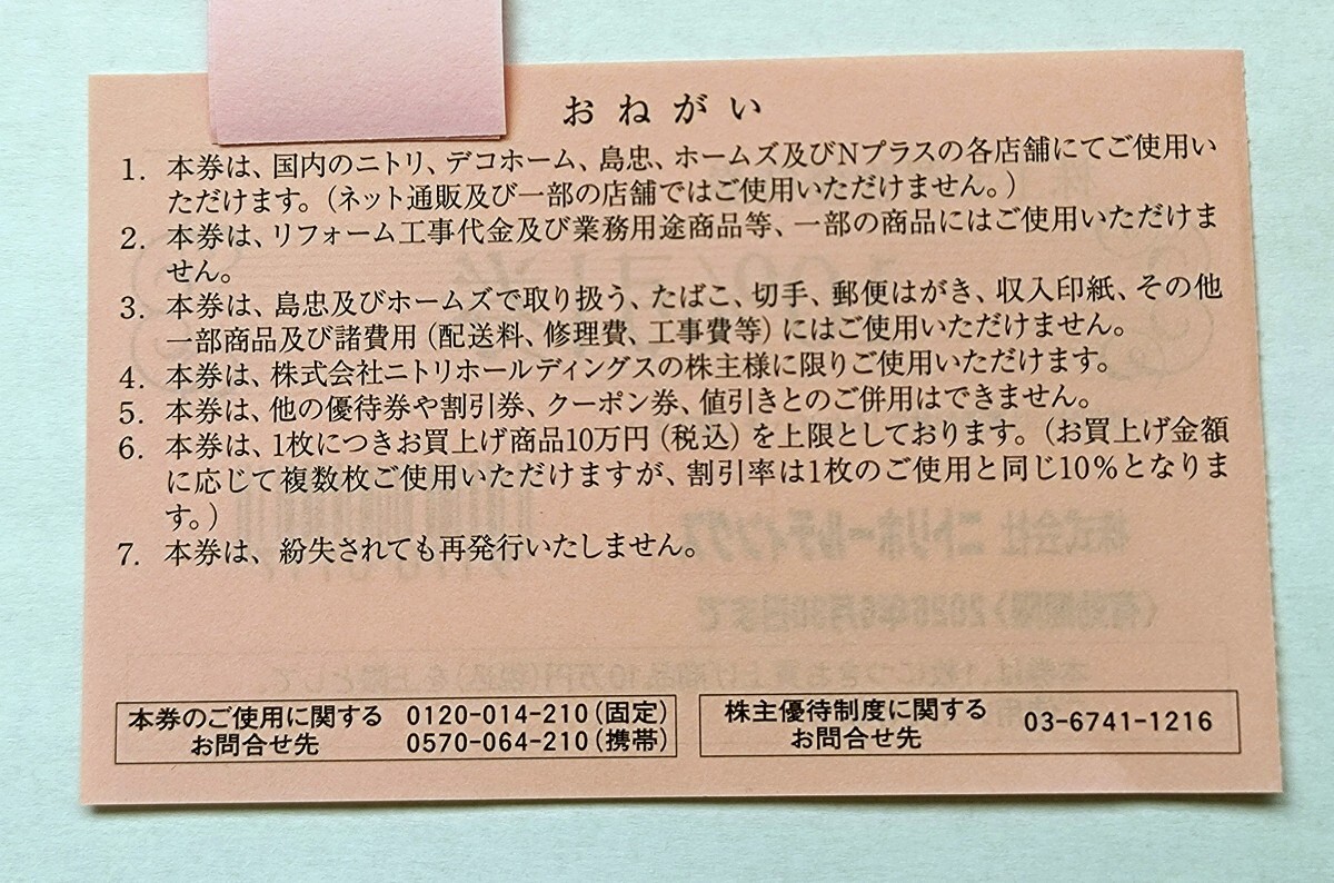 ●★ニトリ☆株主お買物優待券☆ニトリホールディングス☆10%引券☆送料無料★●