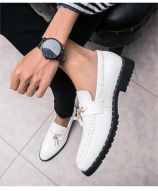 ★NEW★メンズ TG21680-24.5cm/39 ビジネスシューズ ホワイト(3色) クラシカル おしゃれ レトロ UK風 タッセル ローファー デッキシューズ