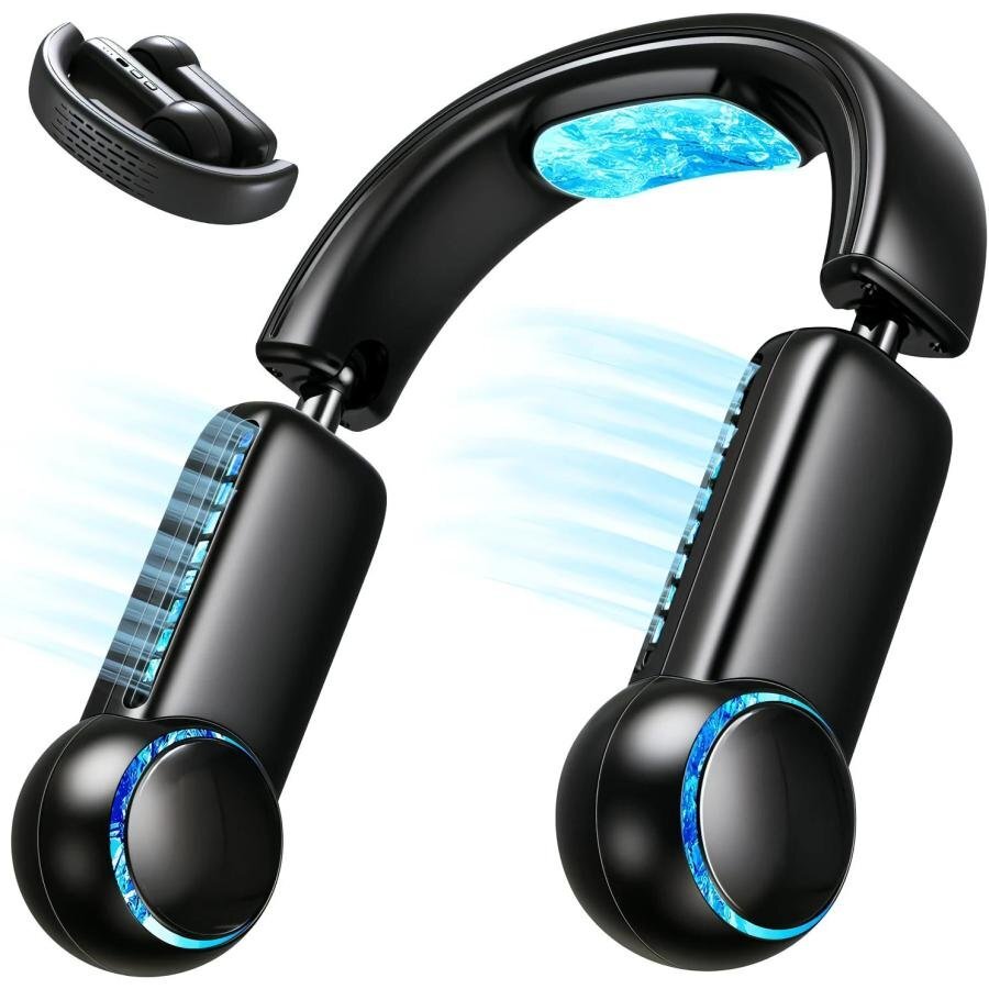首掛け扇風機 折り畳み式 ネッククーラー 冷却プレート 扇風機 急速冷却 羽なし 軽量 冷感 3段階風量 夏用品 ハン 色:ブラック