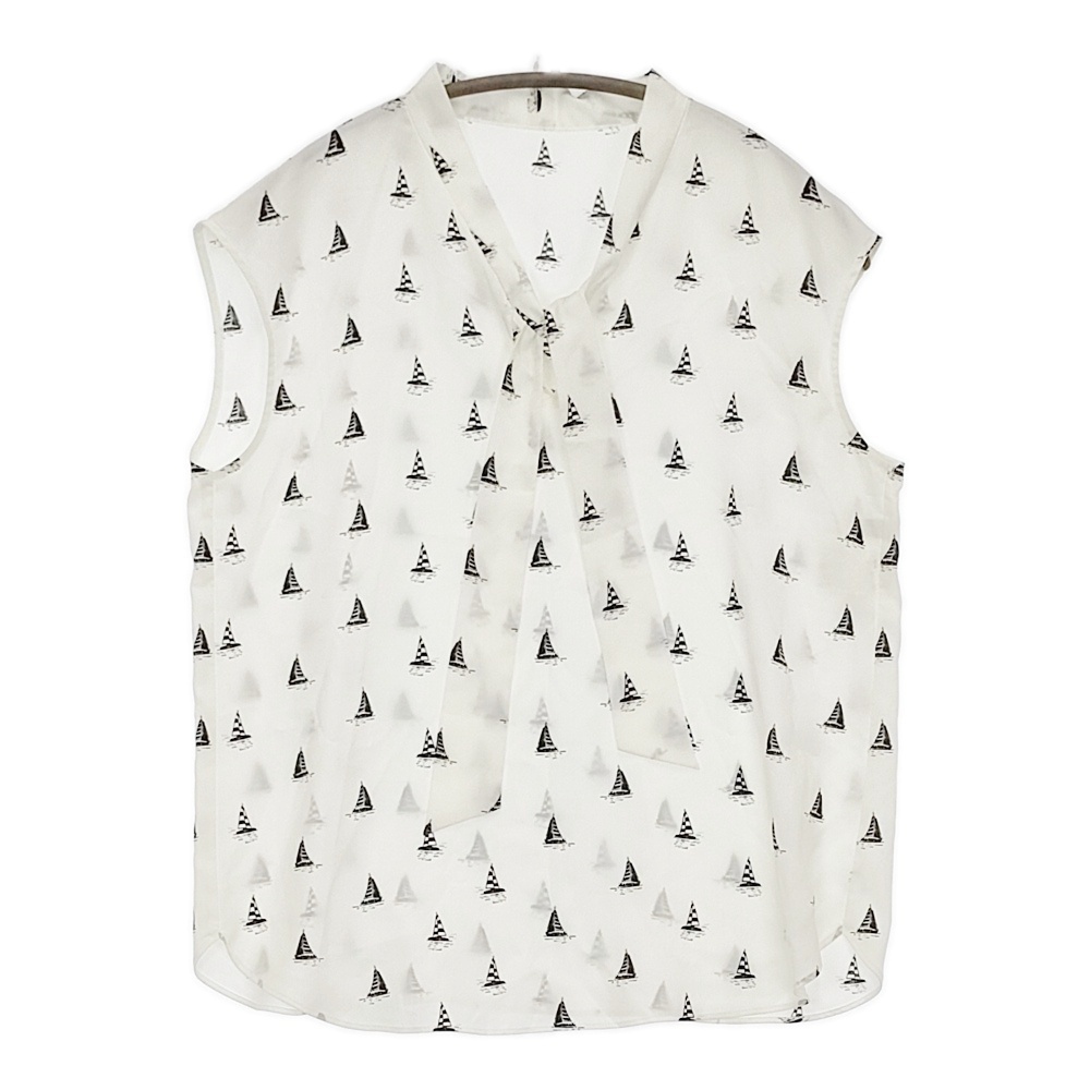 allureville ヨットプリント ボウタイ ノースリーブ サイズ2 ブラウス シャツ ホワイト ブラック アルアバイル 5-0613S 263896