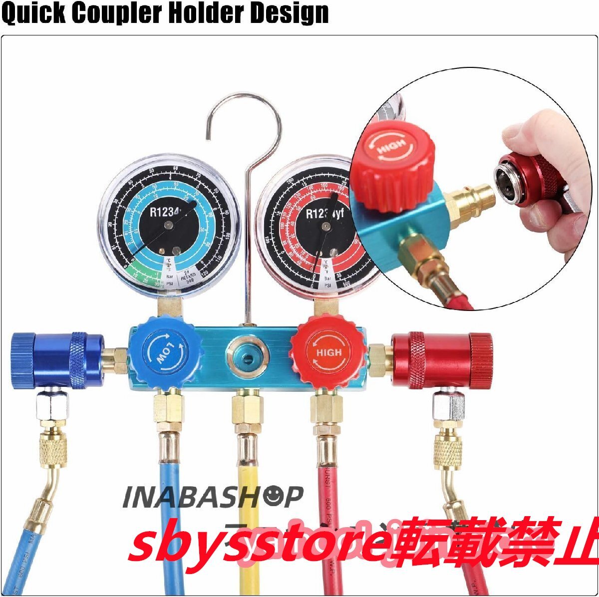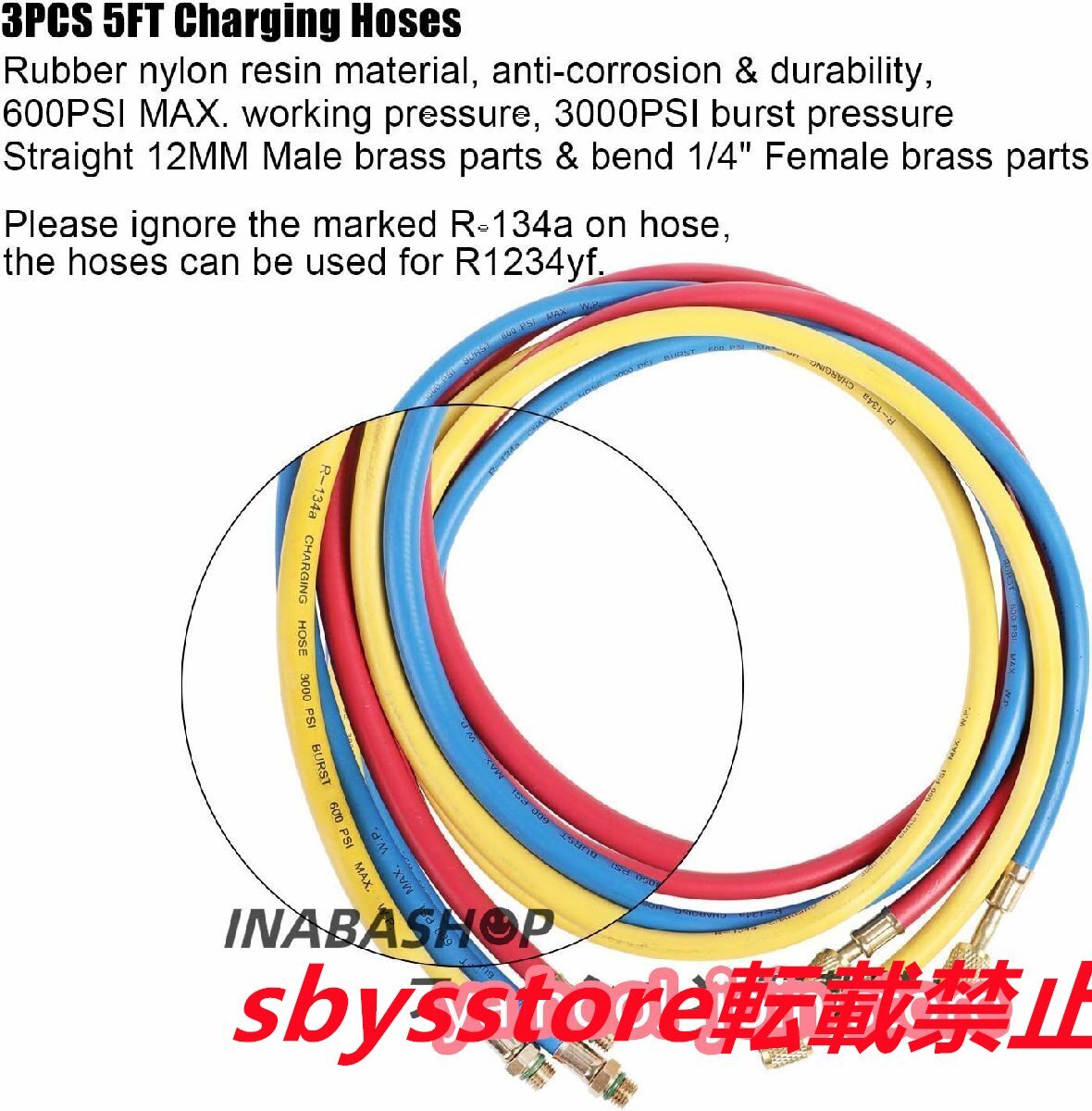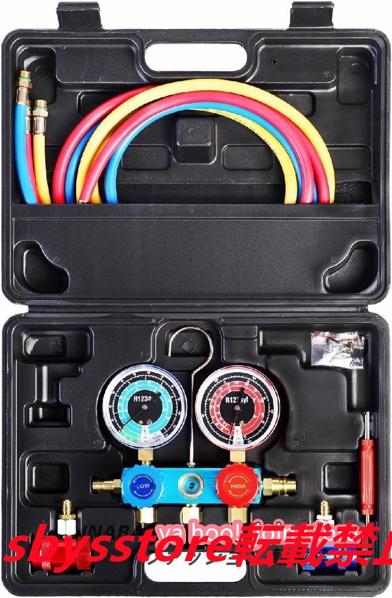 3ウェイACマニホールド診断ゲージエアコン R1234yf 冷媒充電セット 5フィートホースクイックカプラーバルブコアツールキット付き