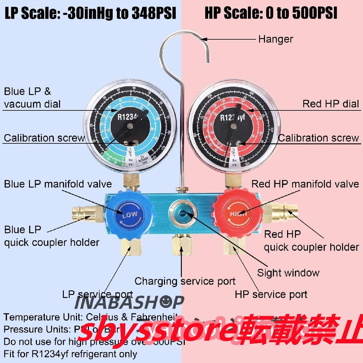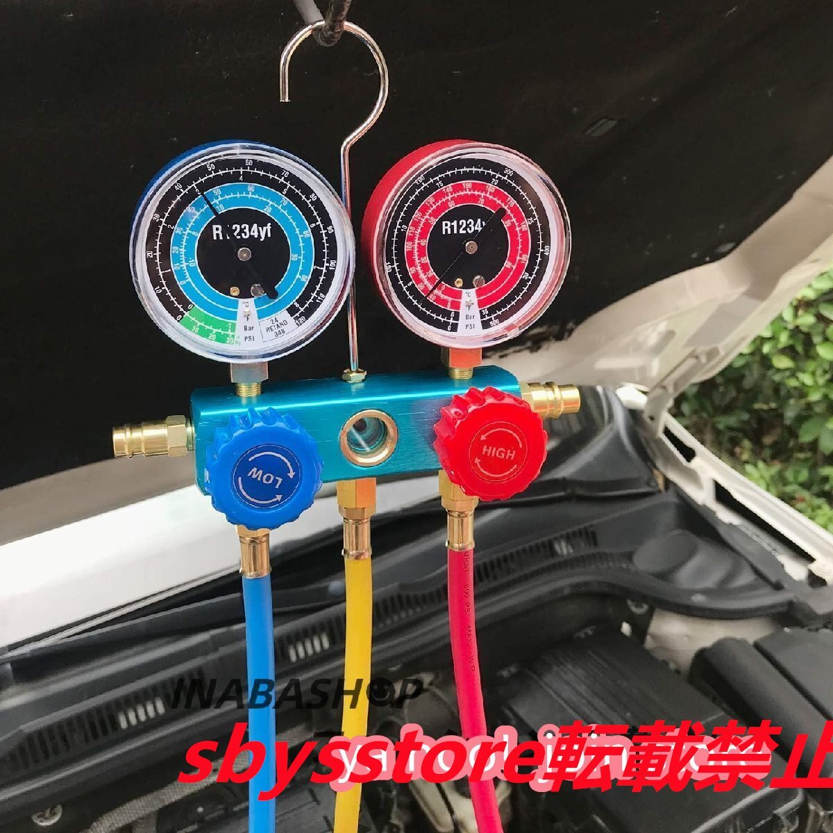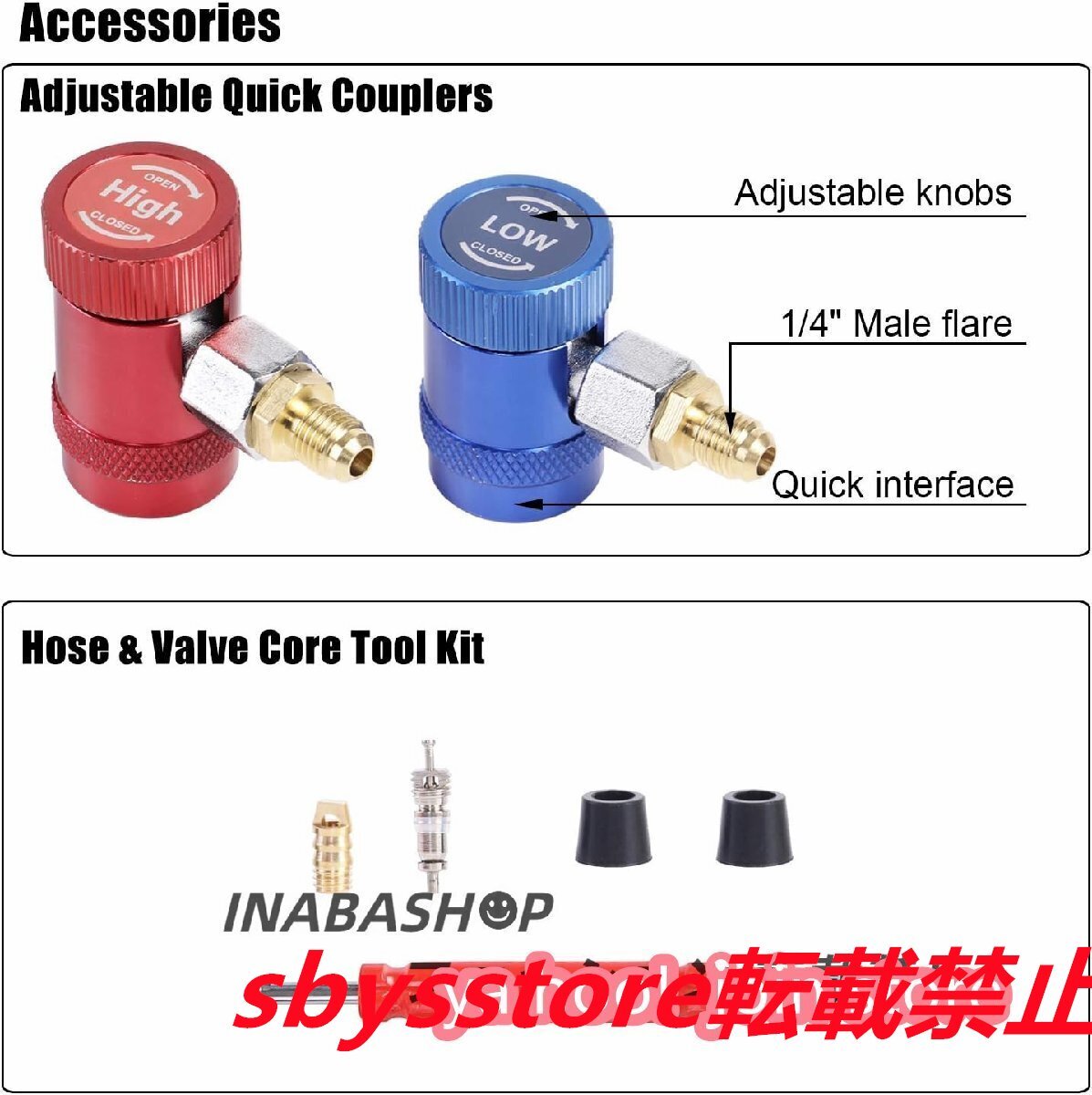 3ウェイACマニホールド診断ゲージエアコン R1234yf 冷媒充電セット 5フィートホースクイックカプラーバルブコアツールキット付き