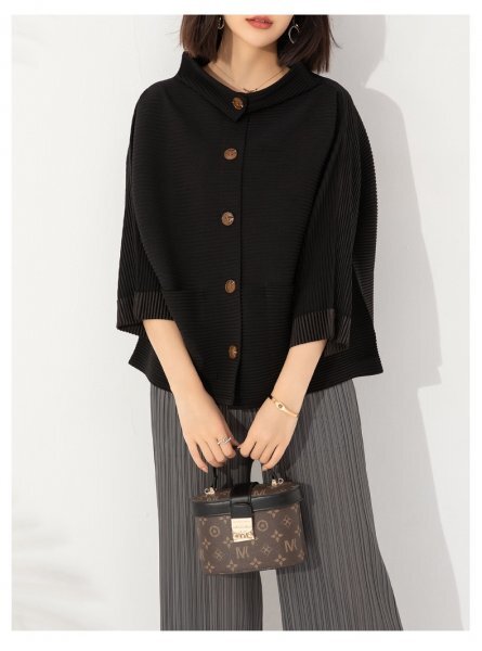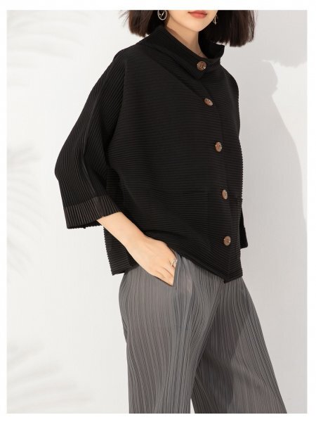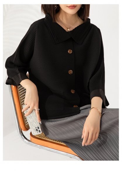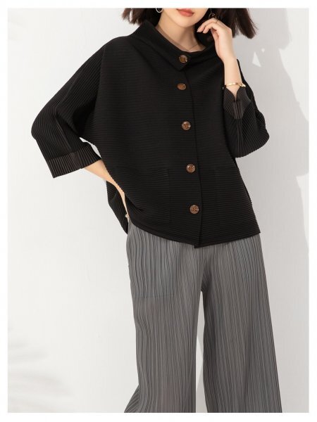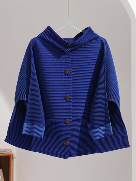 プリーツpleats 前開き上着肌触り弾力いいドレープ性いい青色