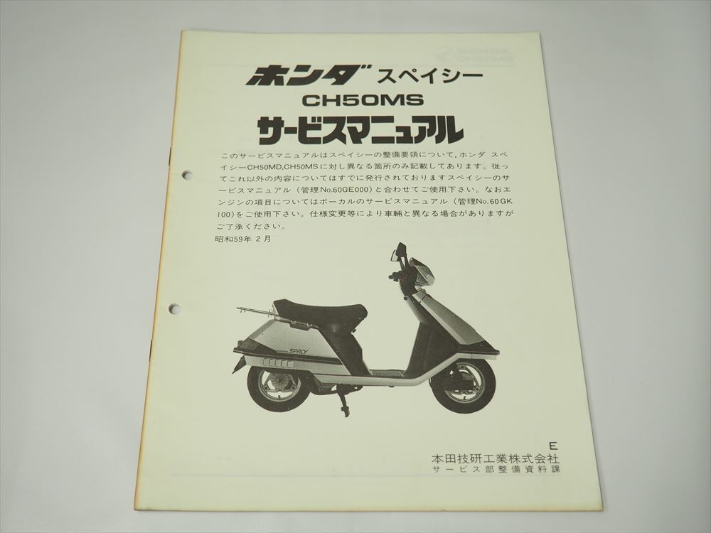 スペイシー CH50MS 捕捉版 サービスマニュアル E AF02 配線図有り 昭和59年2月発行 追補版