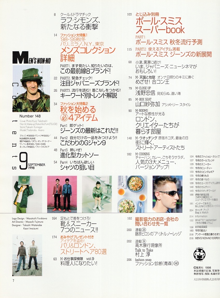 雑誌MEN'S NON-NO No.148(1998年9月号)★'98-'99秋冬パリ・ミラノ・N.Y.・東京コレクション詳細★ポール・スミス/ジーンズとシャツ/靴★