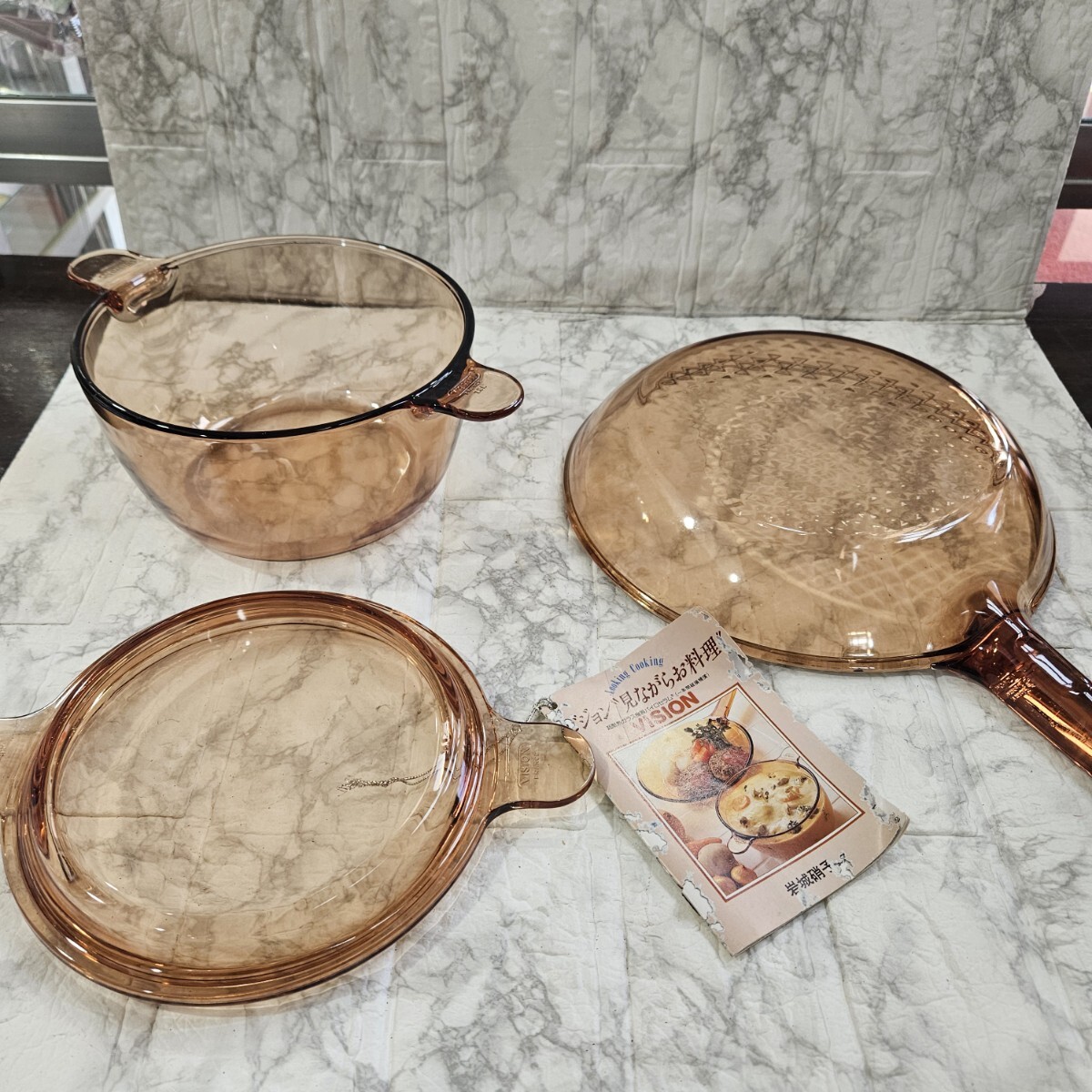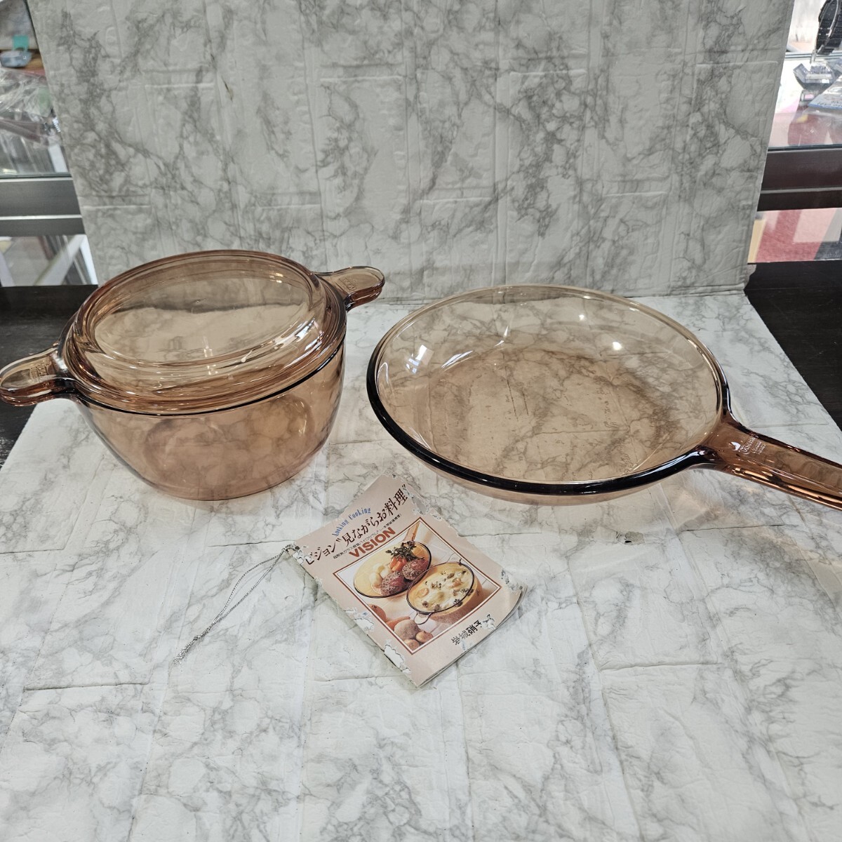 【未使用】 VISION 耐熱ガラス フライパン 2点セット 両手鍋 調理器具 岩城硝子 コレクション