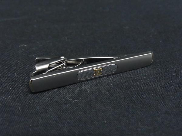 ■美品■ CELINE セリーヌ マカダム ネクタイピン タイクリップ アクセサリー ビジネス 紳士 メンズ シルバー系 DH5385