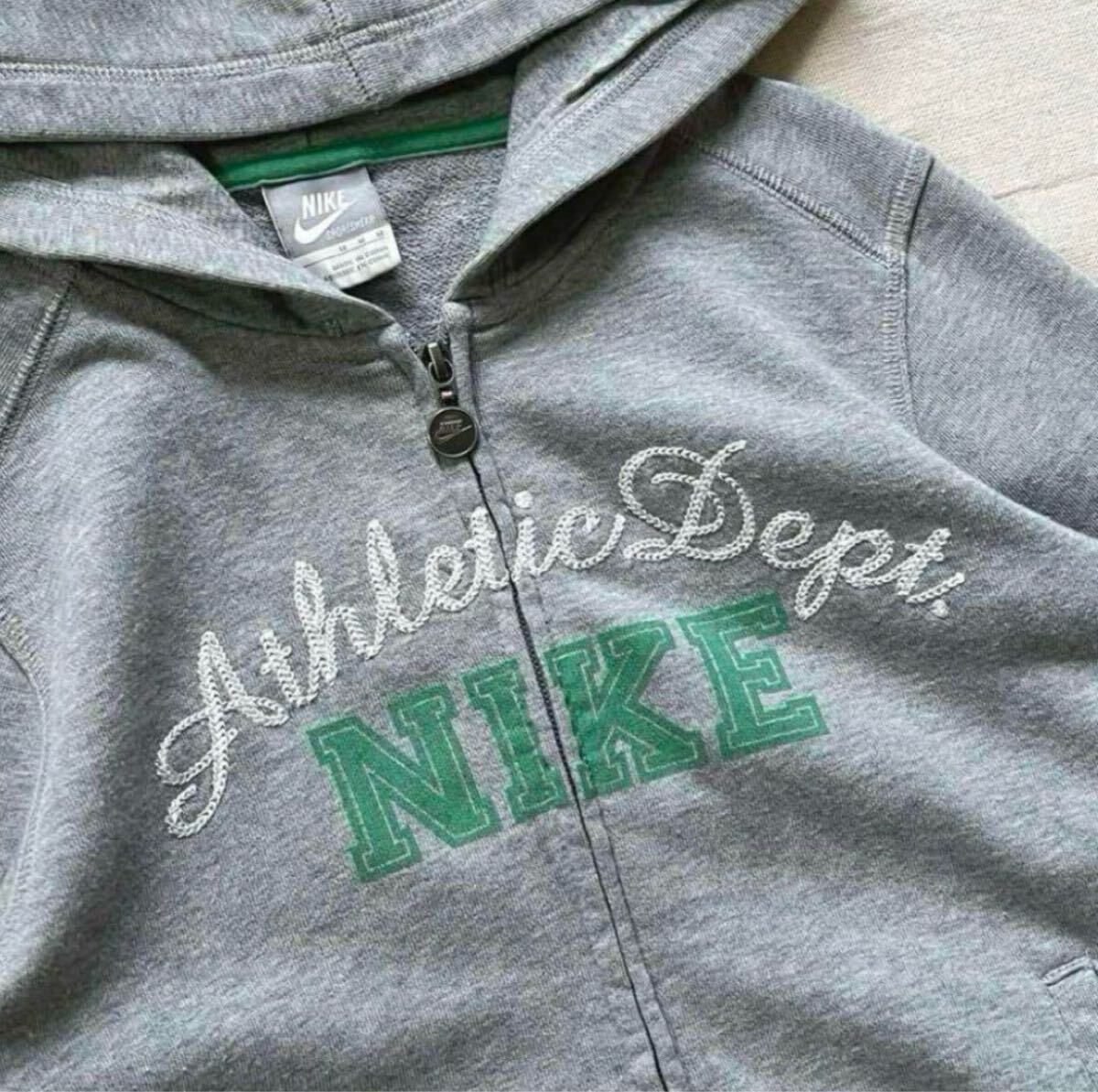 00s archive OLD NIKE ナイathleticロゴ刺繍 コンパクト ジップアップパーカー グレー Y2K 平成ギャル