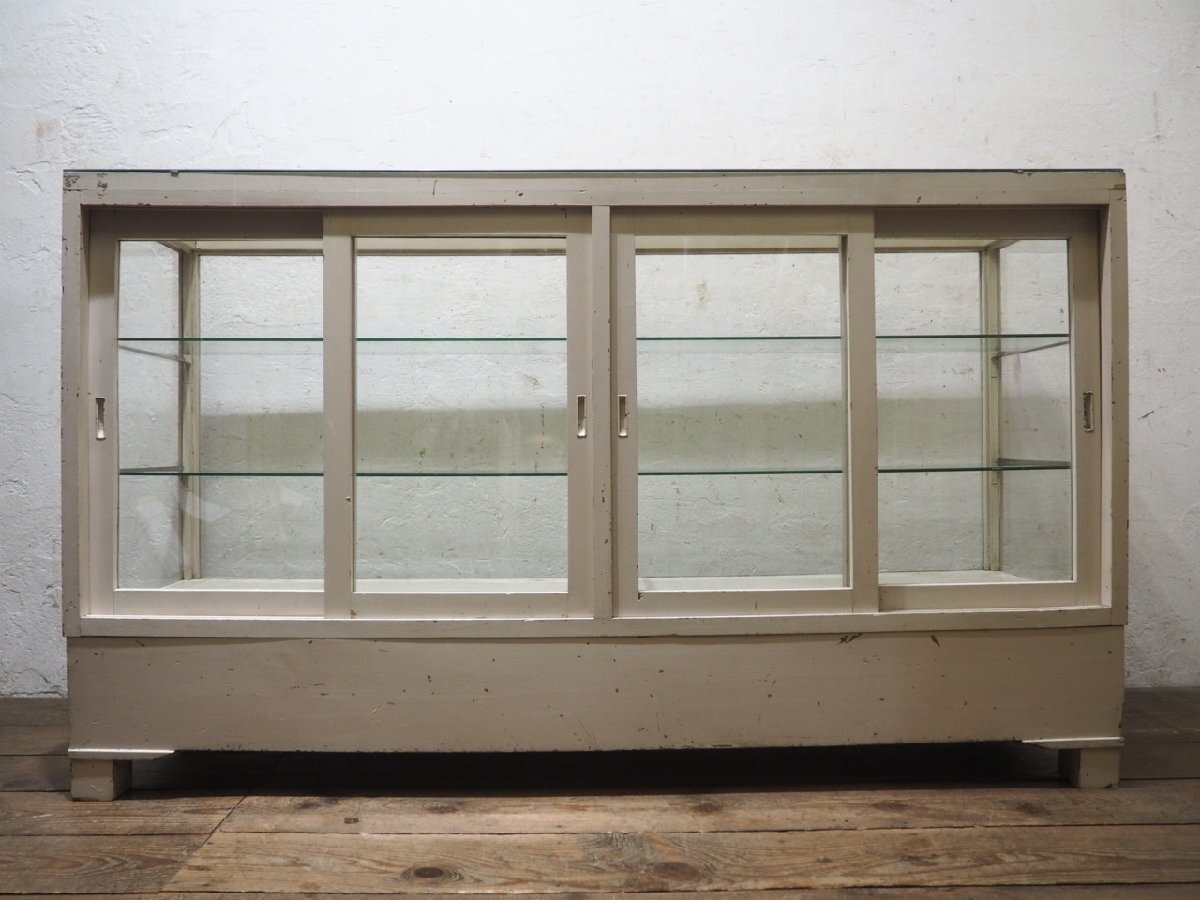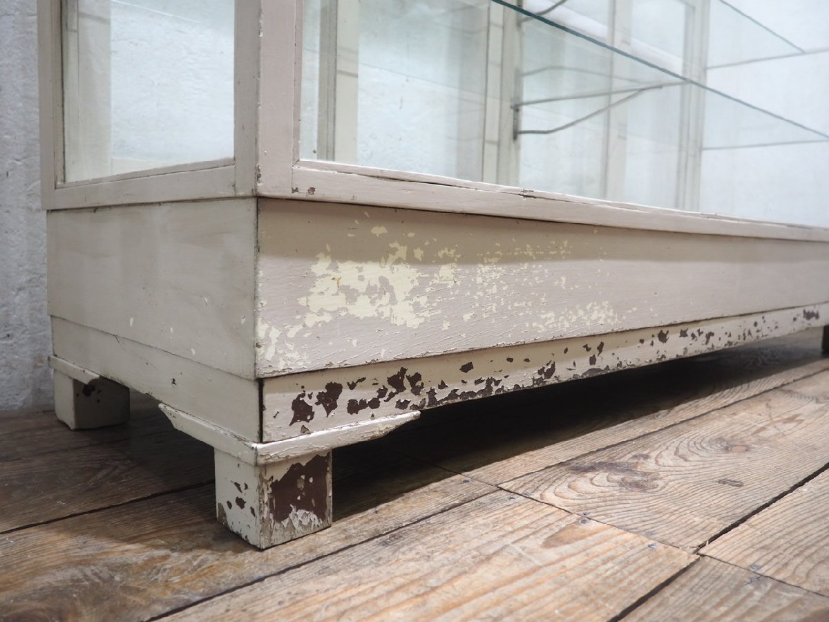 タ荷X1325◆H89cm×W151,5cm◆5面ガラスの大きい木枠ガラスケース◆ショーケース 飾り棚 店舗什器 アンティーク レトロ シャビーR(ヤD)伊