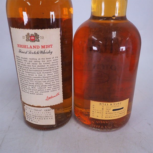 ウイスキー 2本セット ハイランド ミスト 8年 /ホワイト&マッカイ スペシャル 特級 *箱付 ※ 750/760ml 43% スコッチ K24S165