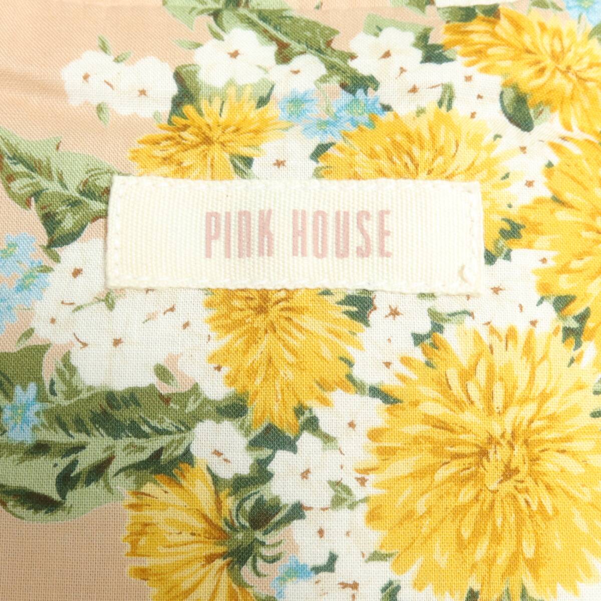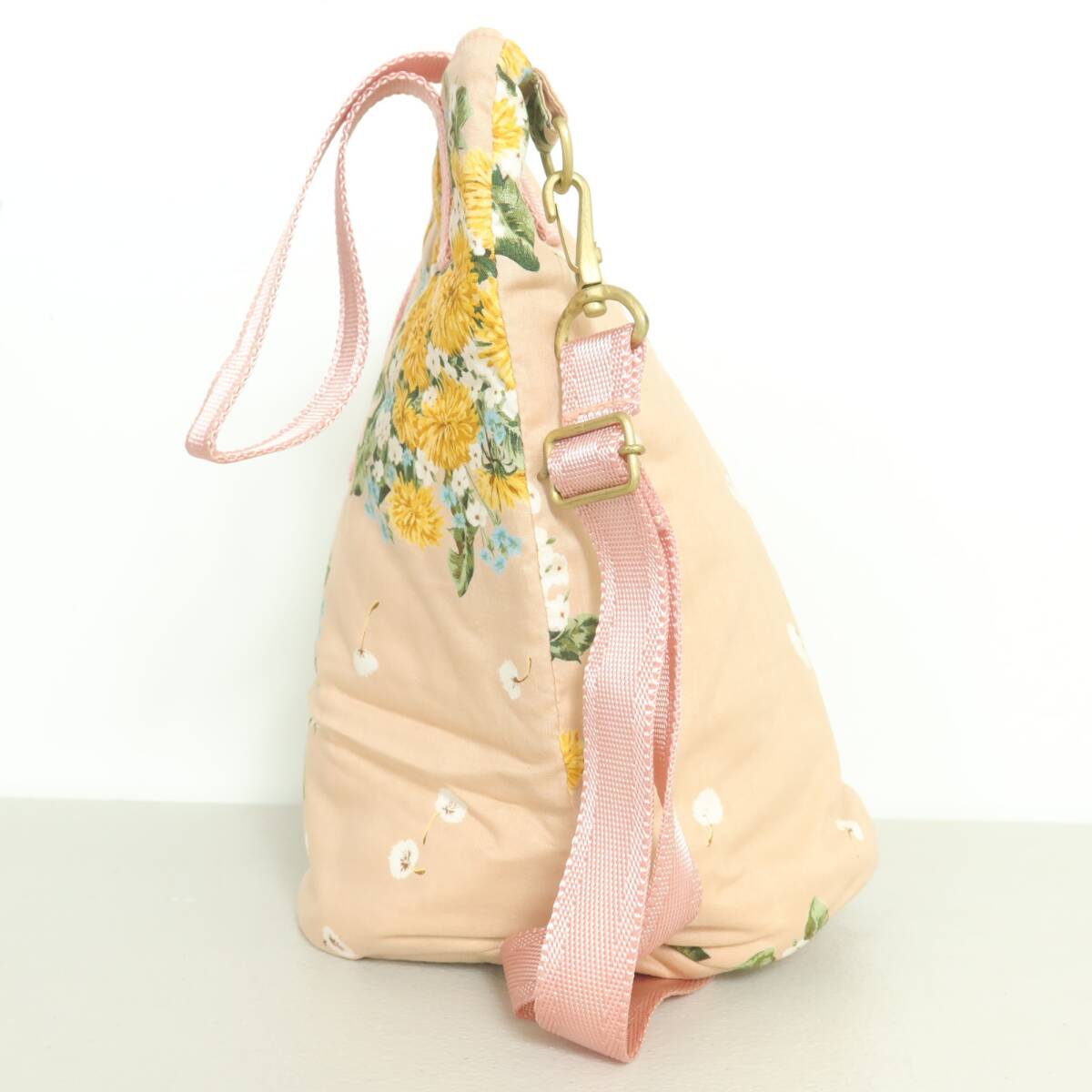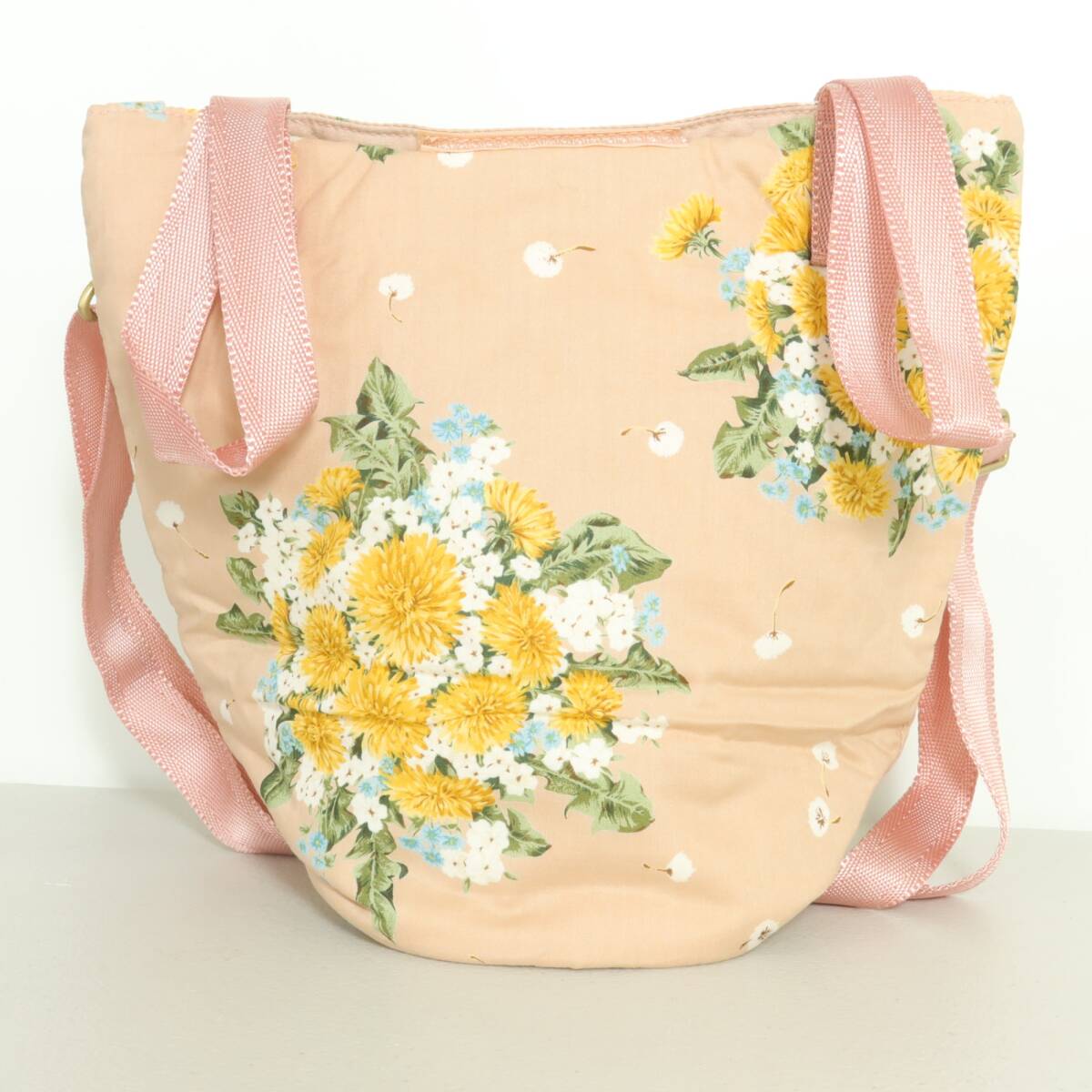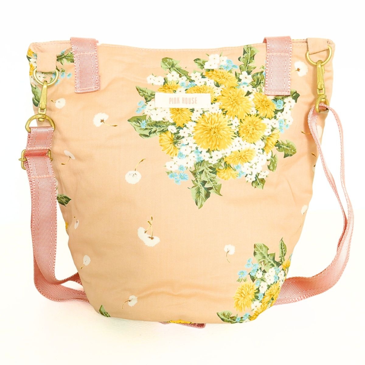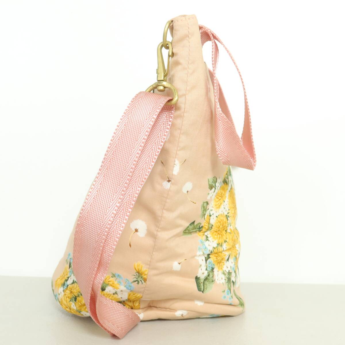 【極美品】ピンクハウス★たんぽぽの綿毛が舞い散る たんぽぽブーケプリント バケツ型バッグ ショルダー サーモンピンク系*k4368
