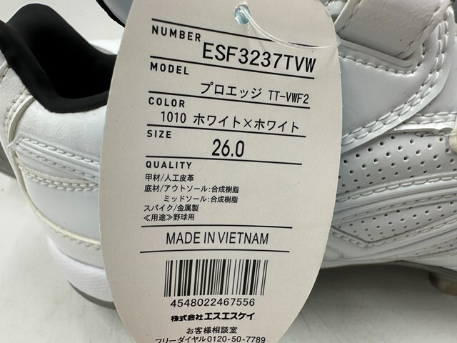 SSK 野球 金具スパイク プロエッジ TT-VWF2 ESF3237TVW ホワイト Size-26.0cm ベルトタイプ