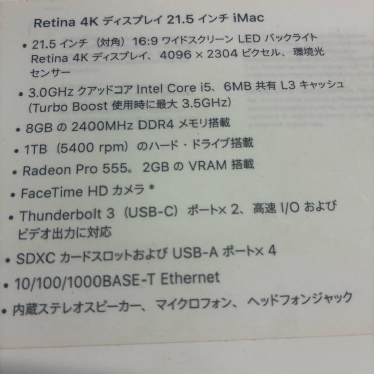 Apple アップル Retina 4Kディスプレイ 21.5インチ iMac 16:9 LED バックライト 【現状品】