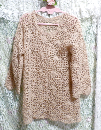 淡い茶色編みセーター/トップス/ニット Light brown braided sweater/tops/knit