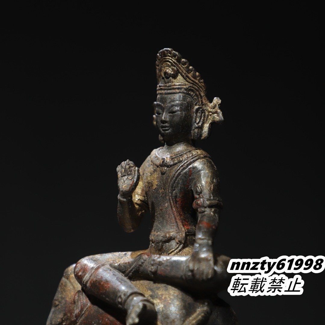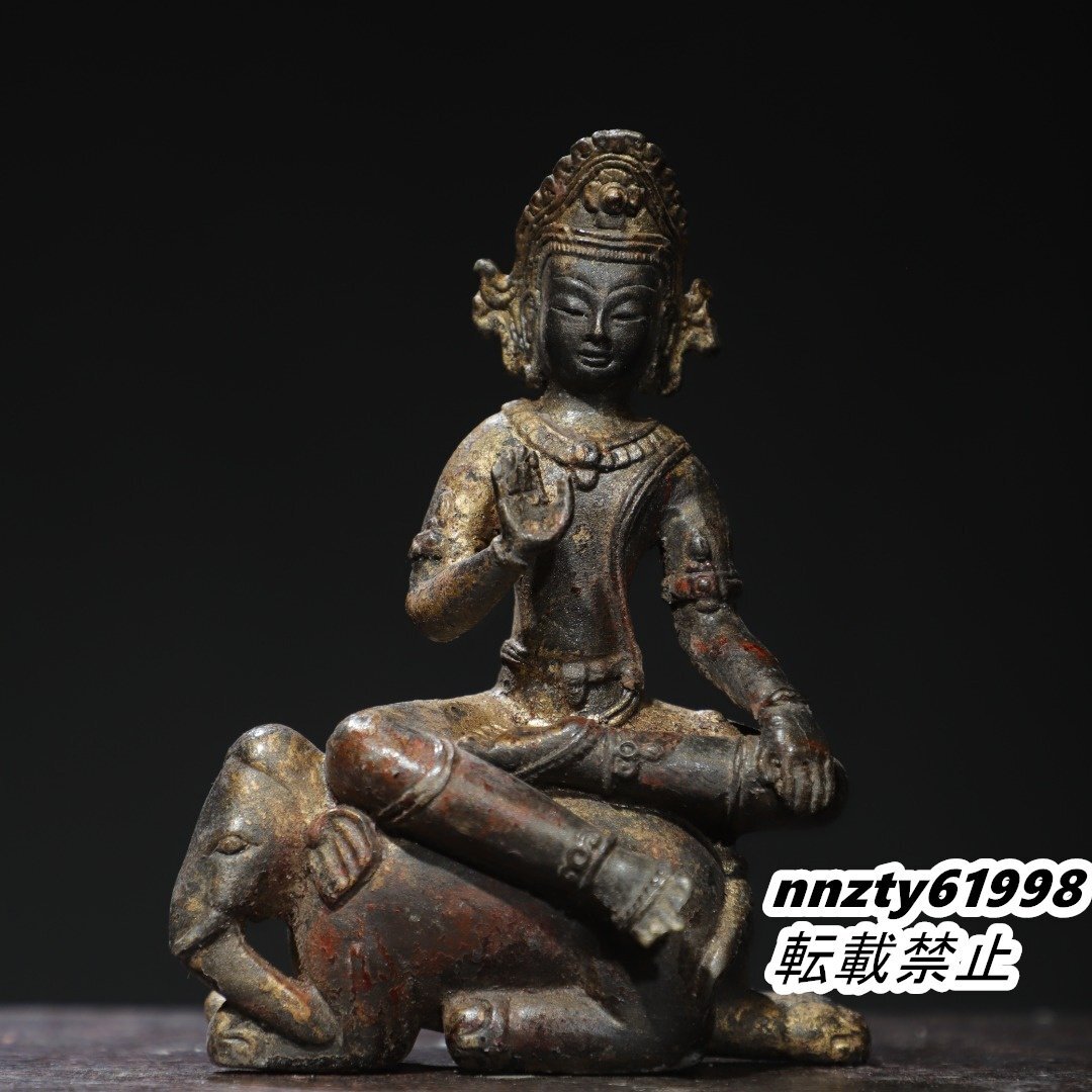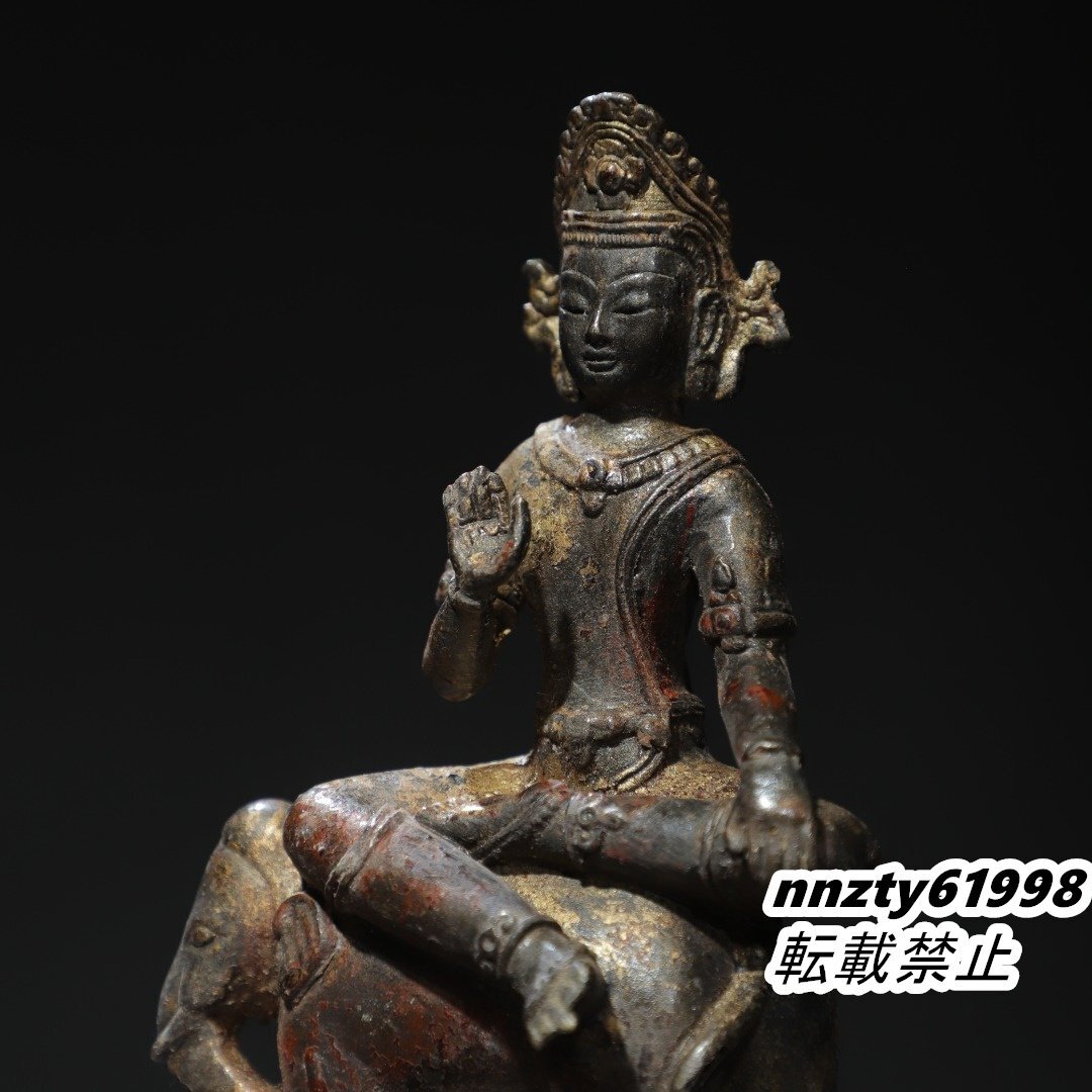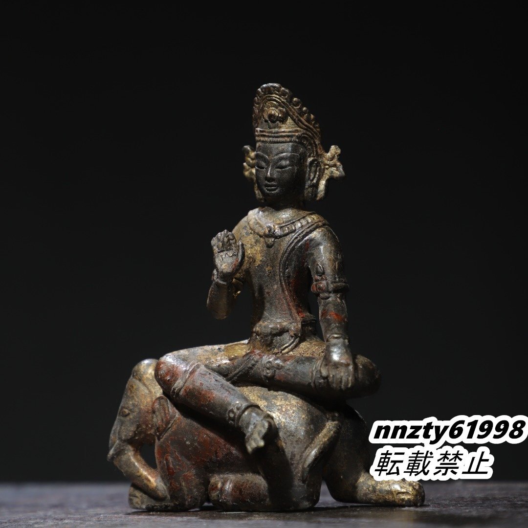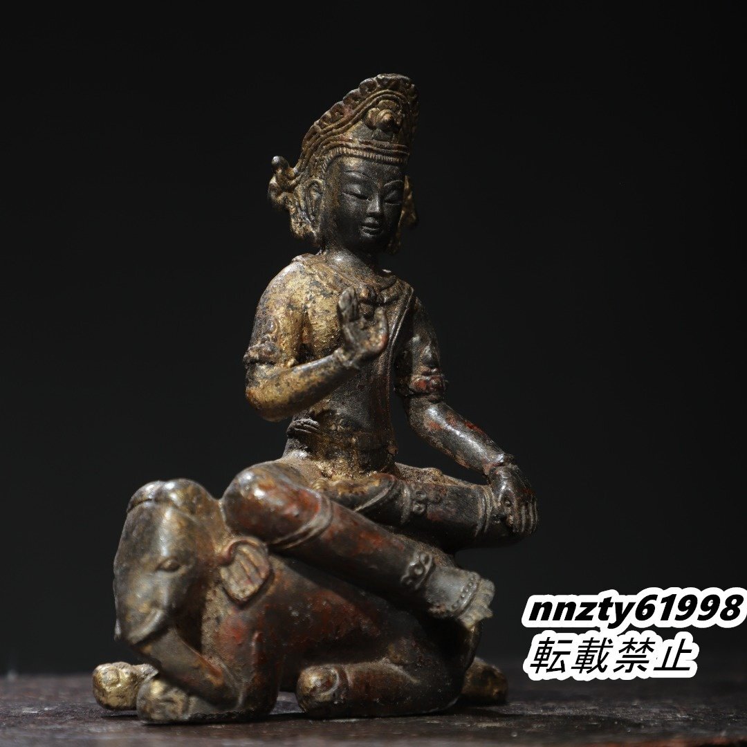 唐物 明代 銅製拓金 普賢菩薩 仏像 仏教古美術 供養品 極細工 古置物 中国古美術 旧蔵出し