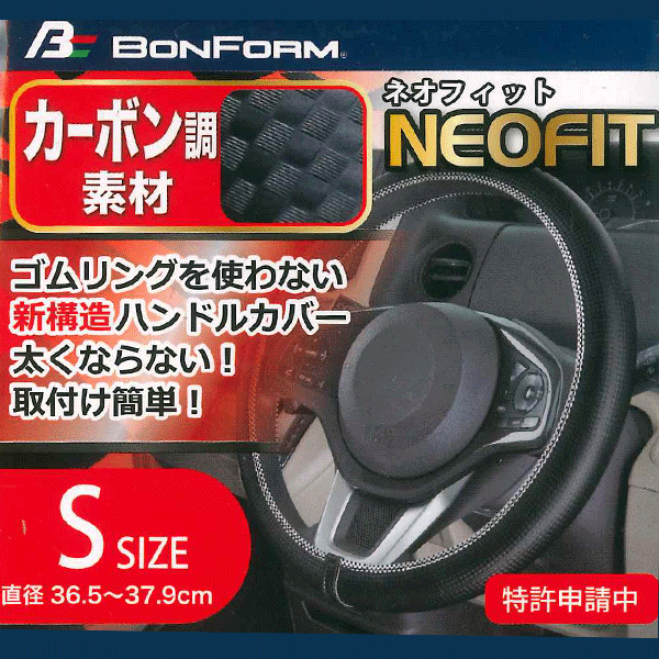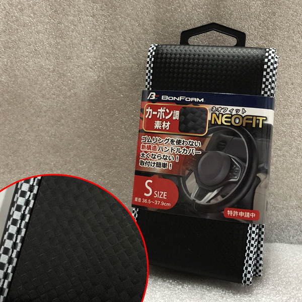 ハンドルカバー Sサイズ 軽自動車 普通車 ゴムリングを使わない新構造 ネオフィットレーサー ブラック 黒 カーボン調 送料無料 訳あり