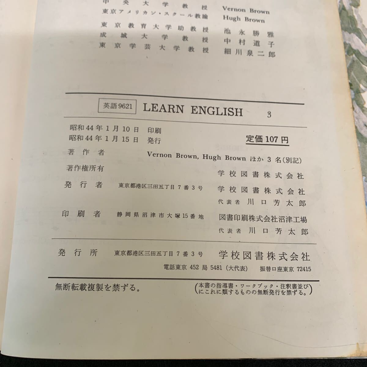 Jc-116/LEARN ENGLISH 3/昭和44年1月発行/学校図書/不規則動詞変化表/L9/707009