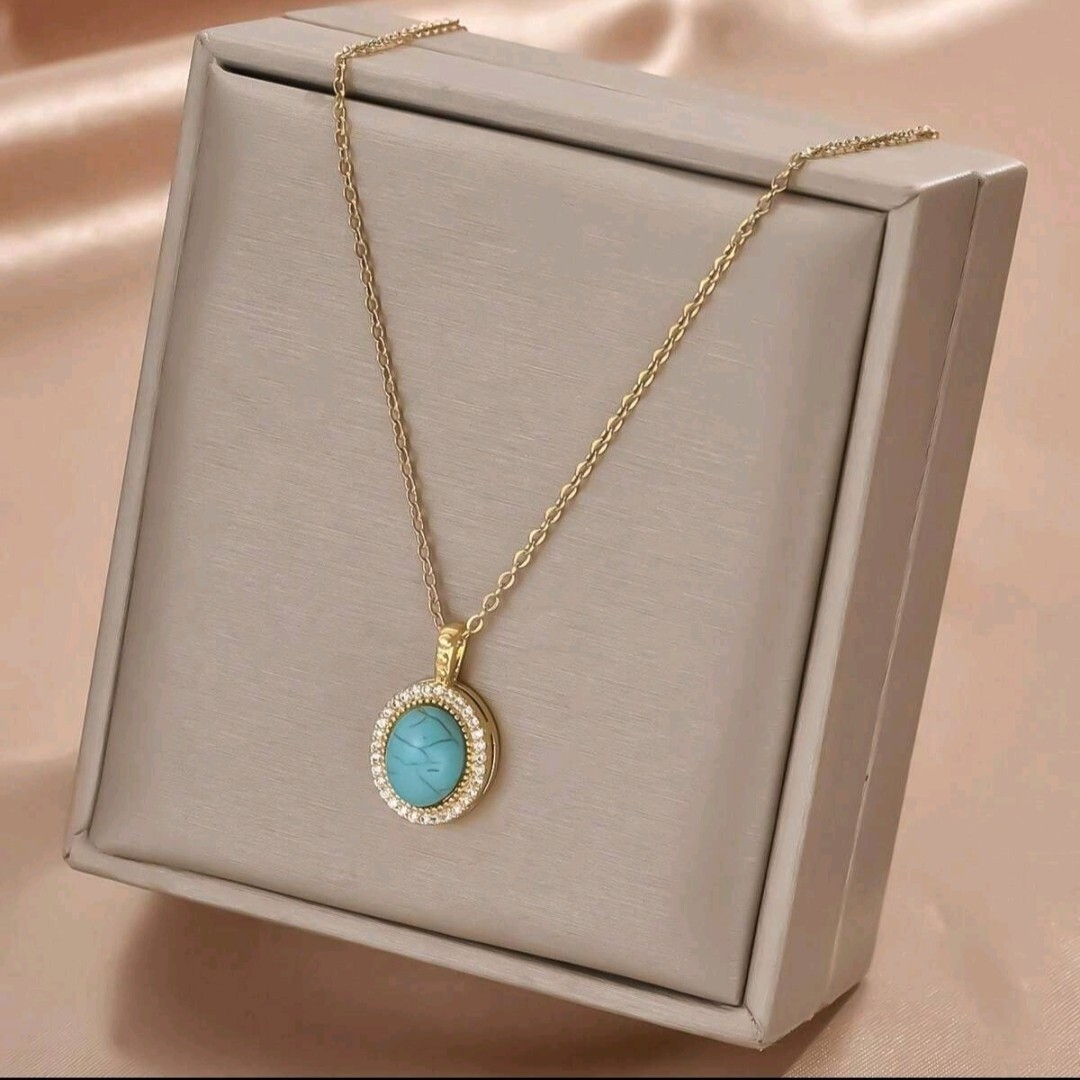 A675 ネックレス レディース ターコイズ トルコ石 ゴールド k18 18金 ステンレス 金属アレルギー ハワイアンジュエリー プレゼント