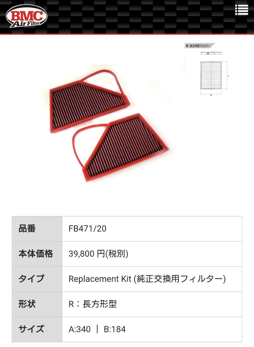 エアフィルター エアクリーナー エアーフィルター ベントレー コンチネンタルGT BMC W12 フライングスター