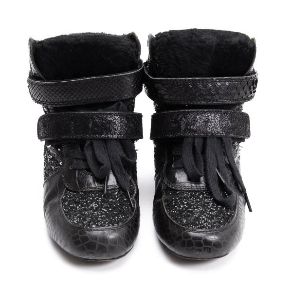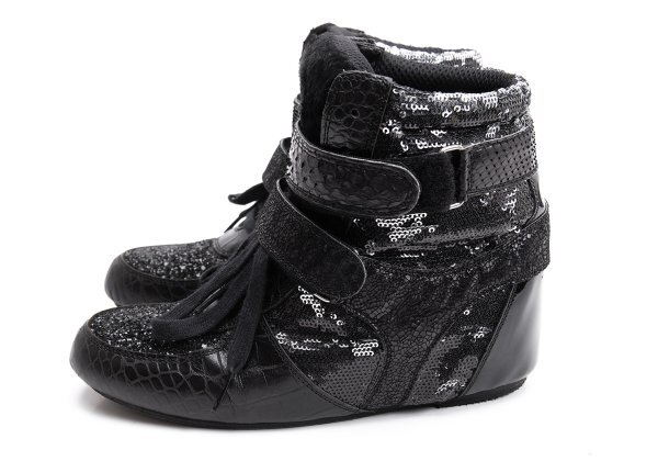 ジュンヤワタナベ コムデギャルソン レザー切替スパンコール装飾ベルクロシューズ 黒S(22位)