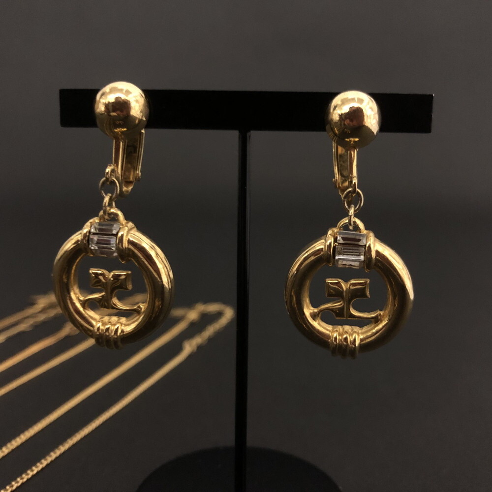 1円 美品 courreges クレージュ パール ラインストーン ロゴ イヤリング ネックレス アクセサリー 5点セット ゴールド /ZX1534
