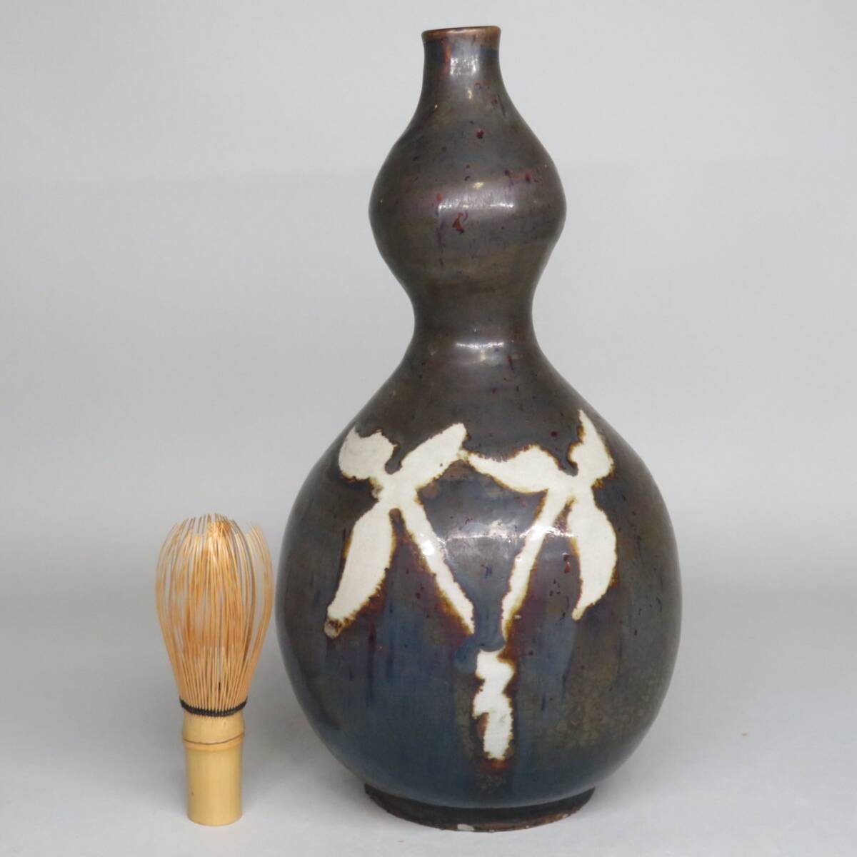 【李朝/高麗 特集出品】黒高麗 黒釉白象嵌瓢箪形瓶 朝鮮古陶磁器/李朝時代 朝鮮美術lot:72902