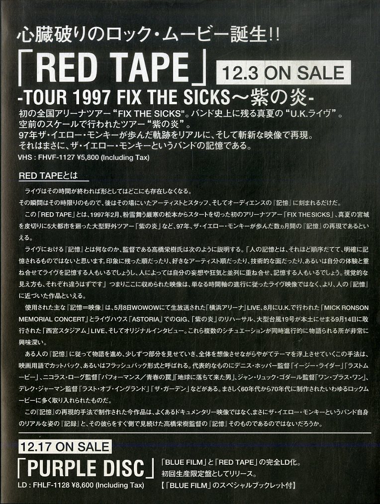 H00021722/●VHSビデオ/イエロー・モンキー「Blue Film」